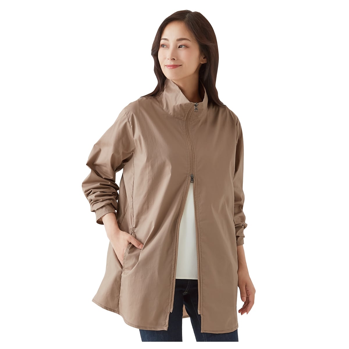 • 【ネット限定】首をしっかりカバーするUVカットロングブルゾン | モカ