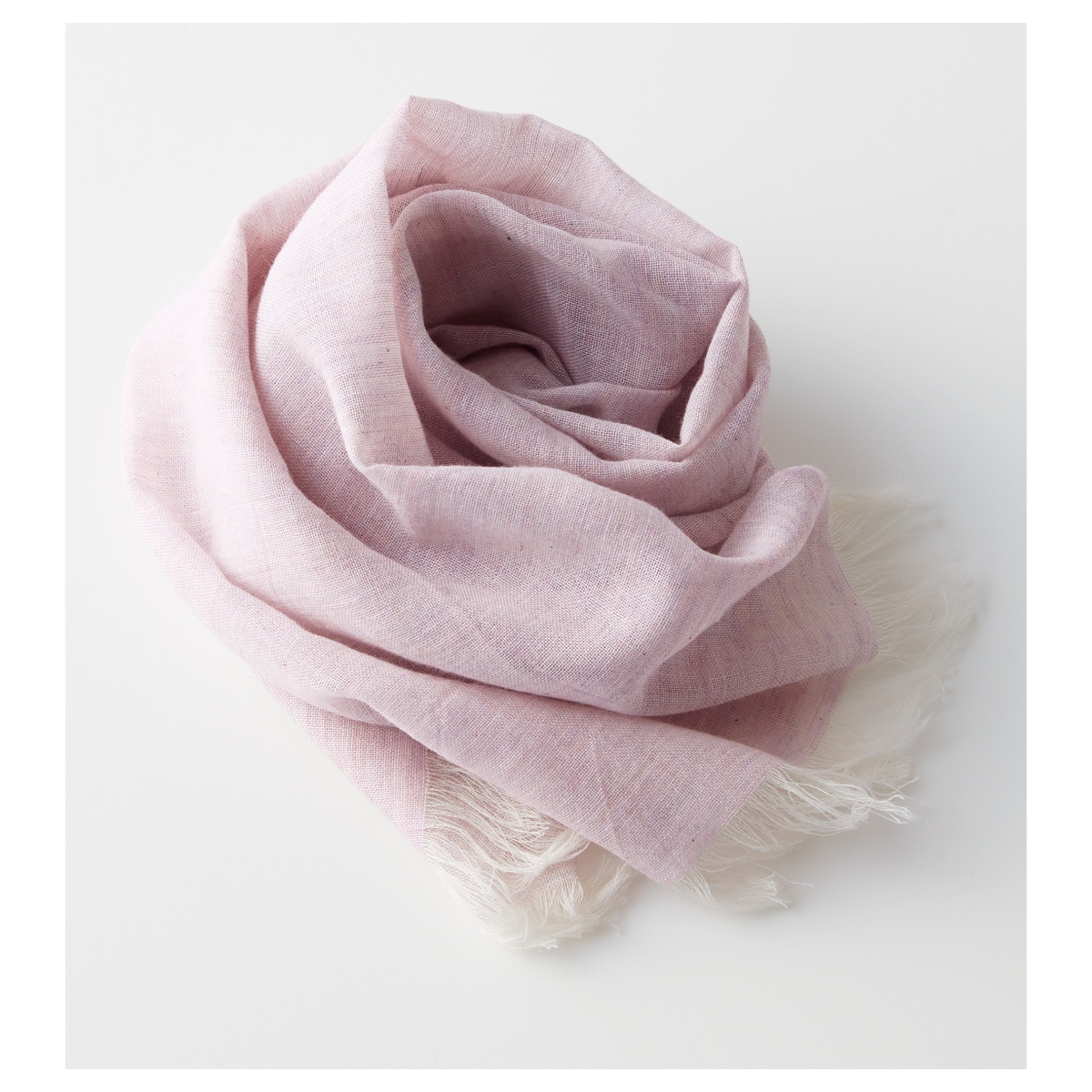 吸水性に優れた綿100%のガーゼスカーフ2色組(写真は2色組のうちパープル系を着用)