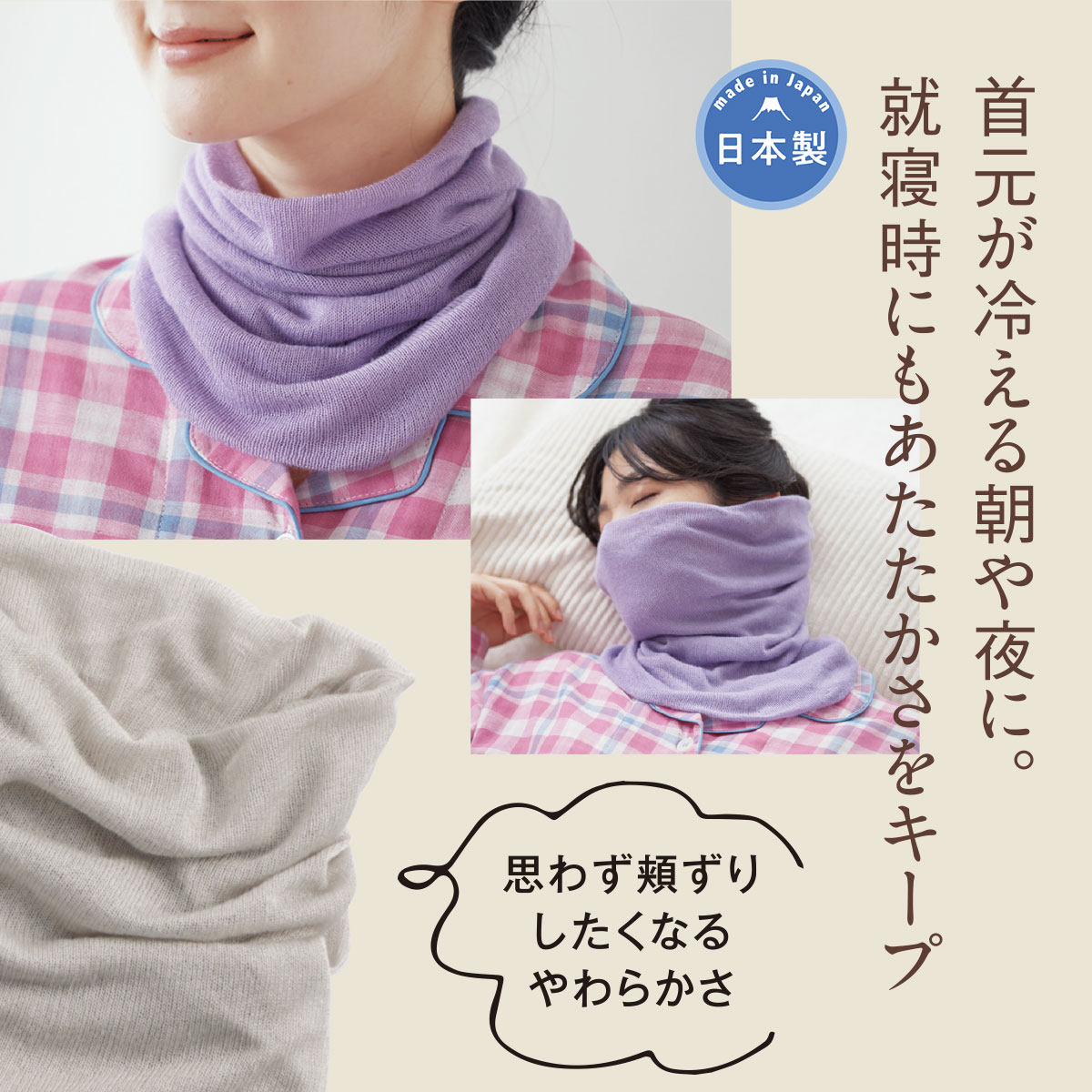 就寝時にも首元のあたたかさをキープするふんわりネックウォーマー。