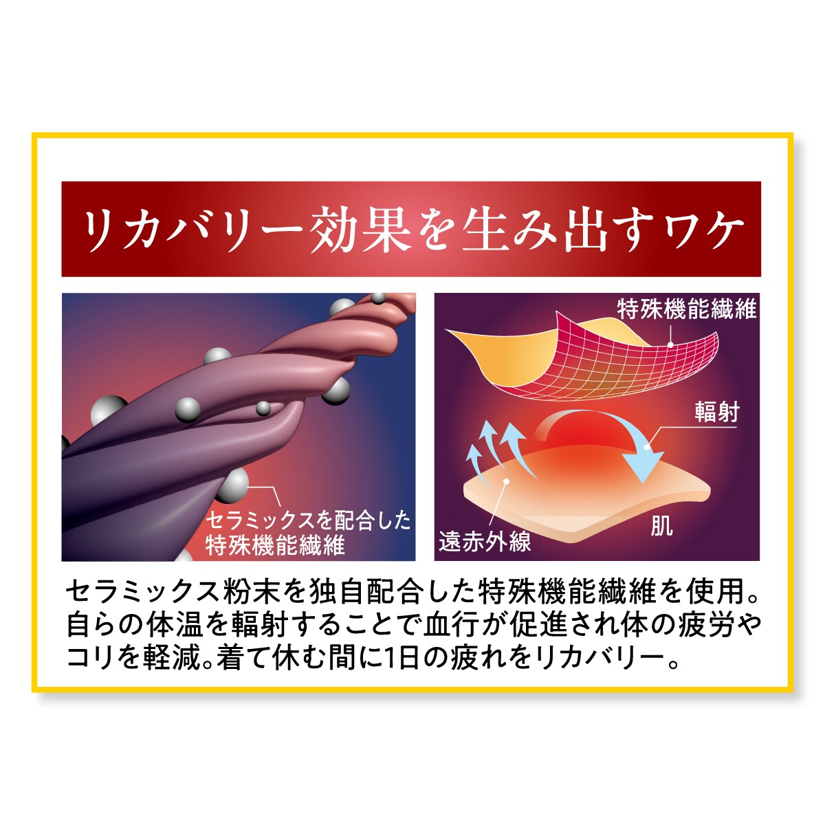 セラミックス粉末を独自配合した特殊機能繊維の遠赤外線効果で疲労回復!血行促進、ハリ・コリの緩和を目指します。日頃の疲れがたまっているあなたへ!就寝時、リラックス時に着用をおすすめします。ウエストは総ゴム仕様で便利な調整ひも付き。左右ポケット付きなので便利です。