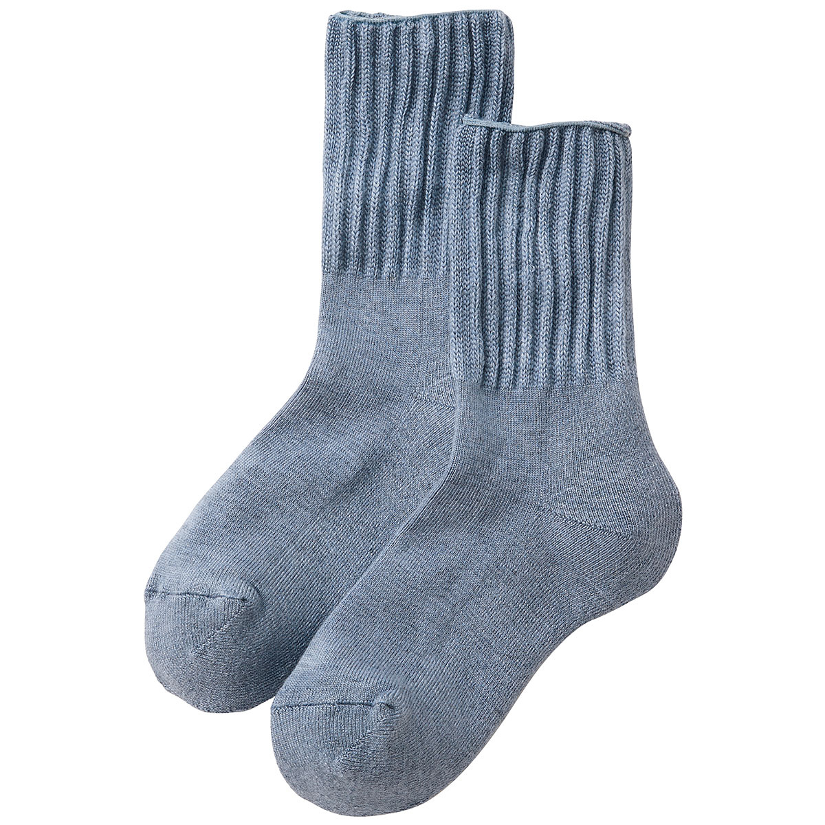 足底ふかふかパイルのソックス・同色2足組(日本製)(毛混)