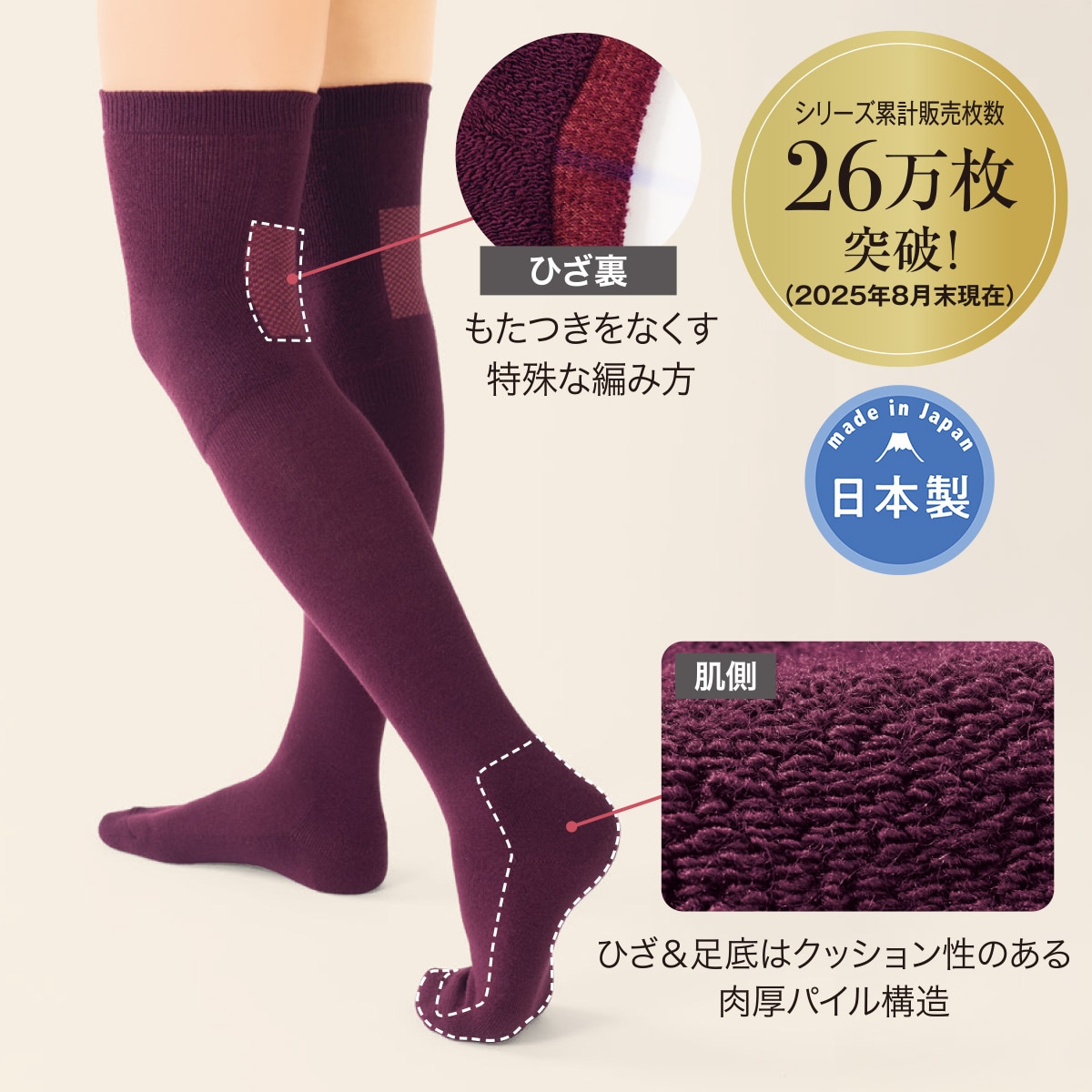 【シリーズ累計販売枚数26万枚突破!(2025年8月現在)】冷えやすいひざ上までカバーするオーバーニーから新色ワイン登場!