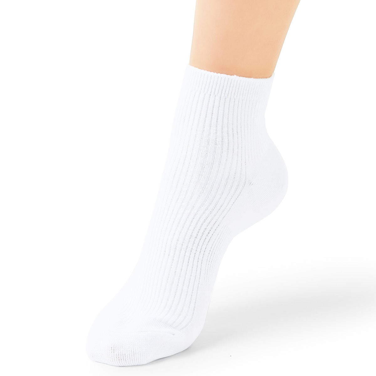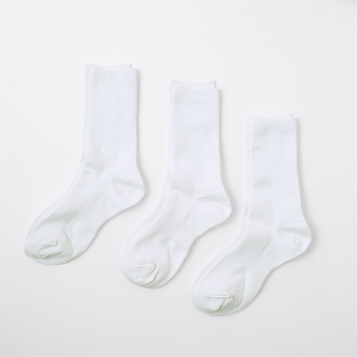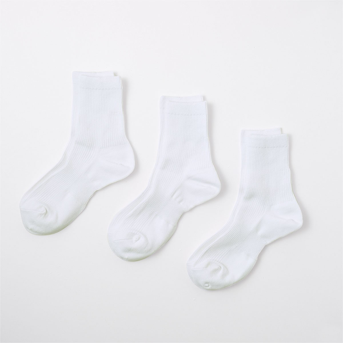 スクール用からお仕事用まで!何足あっても重宝する定番のホワイトリブソックス。全4丈×4サイズの豊富なサイズ展開で、幅広くお使いいただけます。お買い得価格にもこだわった同丈3足組。土踏まず部分にはズレにくいサポート機能を付けました。抗菌防臭付きで、かかとつま先はしっかり補強で破れにくいのもポイントです。