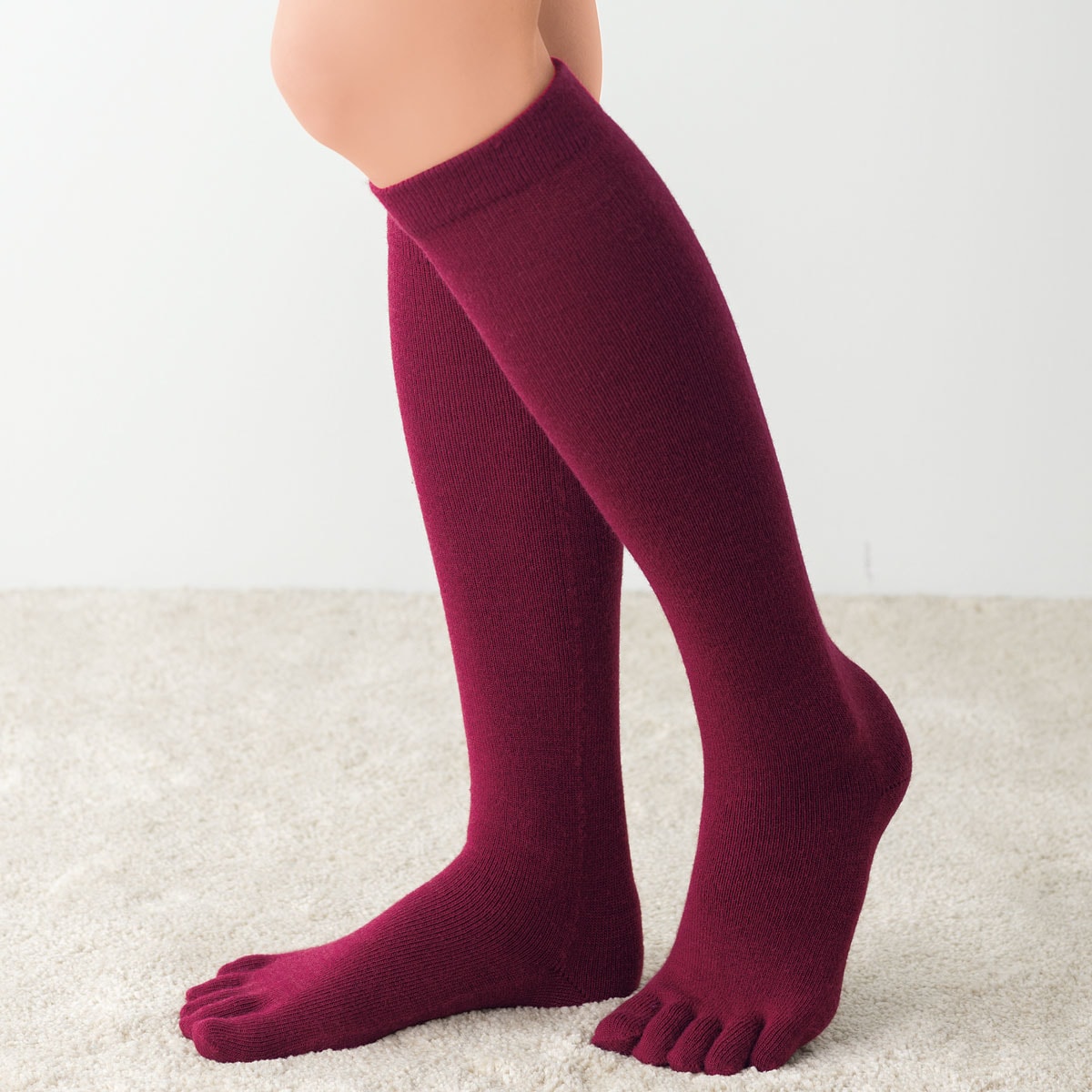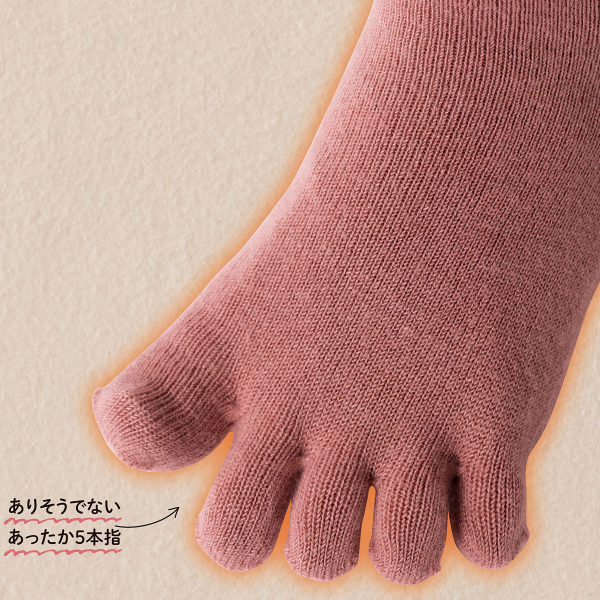 遠赤外線効果でポカポカ!クルー丈の5本指ソックス・同色2足組。