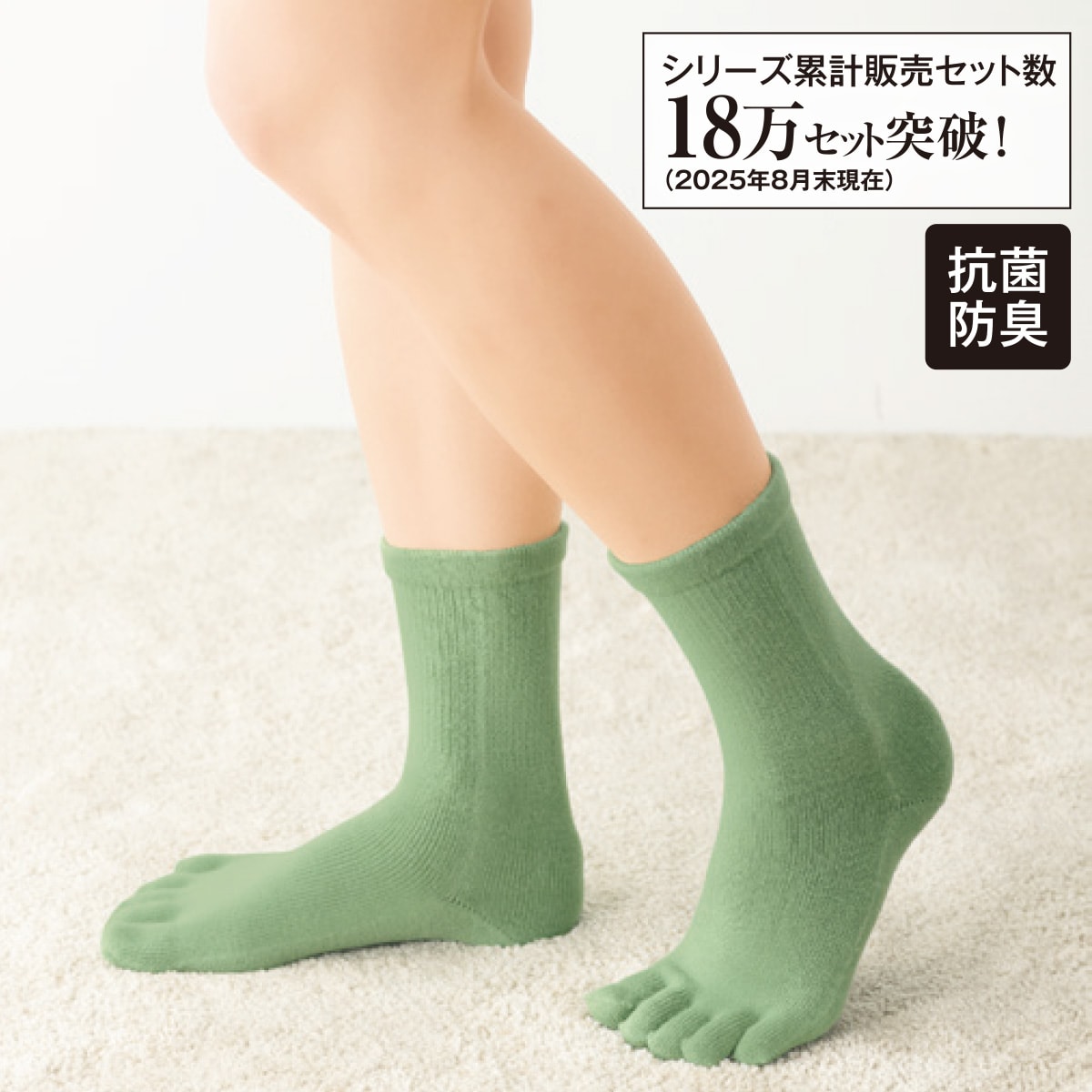 【シリーズ累計販売セット数18万セット突破!(2025年8月現在)】遠赤外線効果でポカポカ!クルー丈の5本指ソックス・同色2足組
