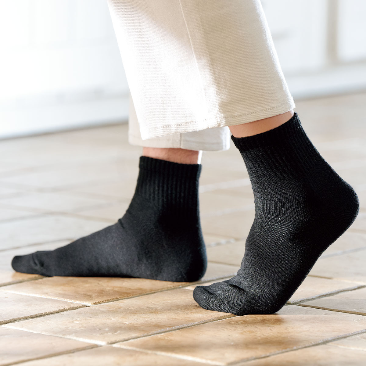 -お買い得ポイント-足のニオイの原因となる細菌の増殖を抑制することで、一日中爽快な履き心地を保つ高機能ソックスです。-デザイン-ビジネスシーンで履きやすいブラックとグレーの2色をご用意。-素材特徴-蒸れやすい革靴にも安心の抗菌防臭加工付き。