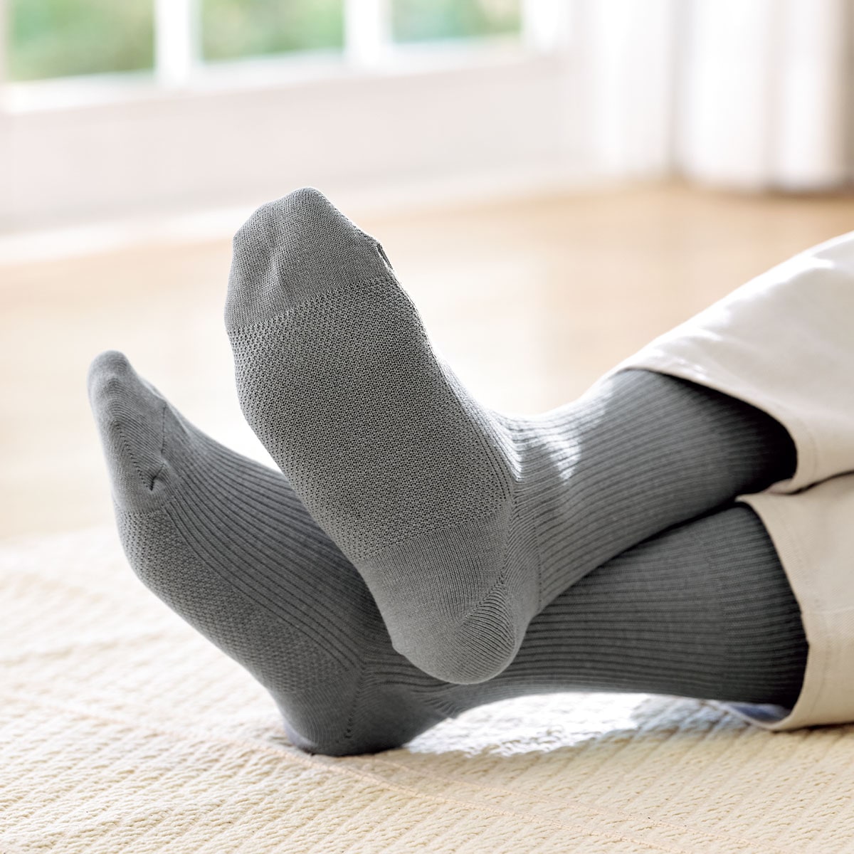 -お買い得ポイント-「通気性と吸水速乾性」に優れ、夏の汗ばむ季節やアクティブなシーンでさらさらとした快適な履き心地です。-デザイン-鹿の子編みは肌離れが良く、通気性の高いメッシュとの組み合わせで爽やかな清涼感が特徴です。-素材特徴-足底をメッシュ編みにすることで、靴内の熱や湿気を素早く逃がし、ムレを軽減します。