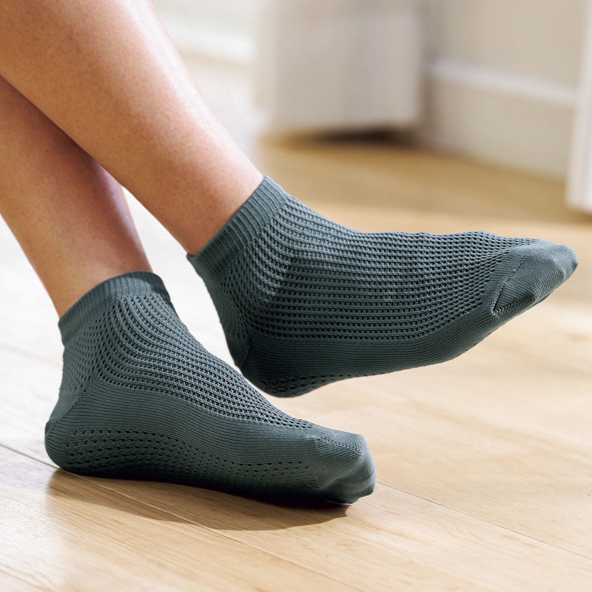 つま先とかかと以外はメッシュ編みで通気性◎