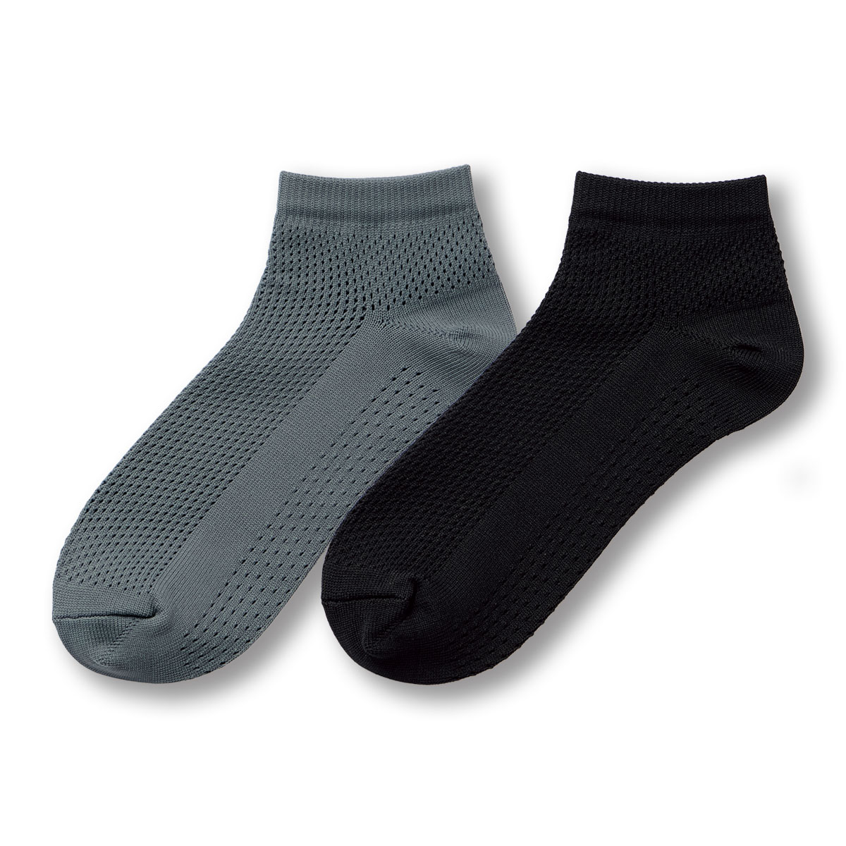 -お買い得ポイント-足のニオイの原因となる細菌の増殖を抑制することで、一日中爽快な履き心地を保つ高機能ソックスです。-デザイン-足首が見えるため軽快でスッキリとした印象を与え、春夏やスポーツシーンに最適です。-素材特徴-つま先とかかと以外はメッシュ編みで通気性◎。