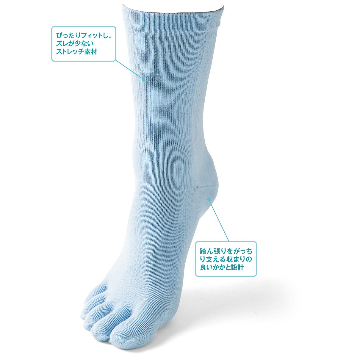 リピーター続出!しっかりふんばれて、機能満載の5本指ソックス(同色3足組)※サックス