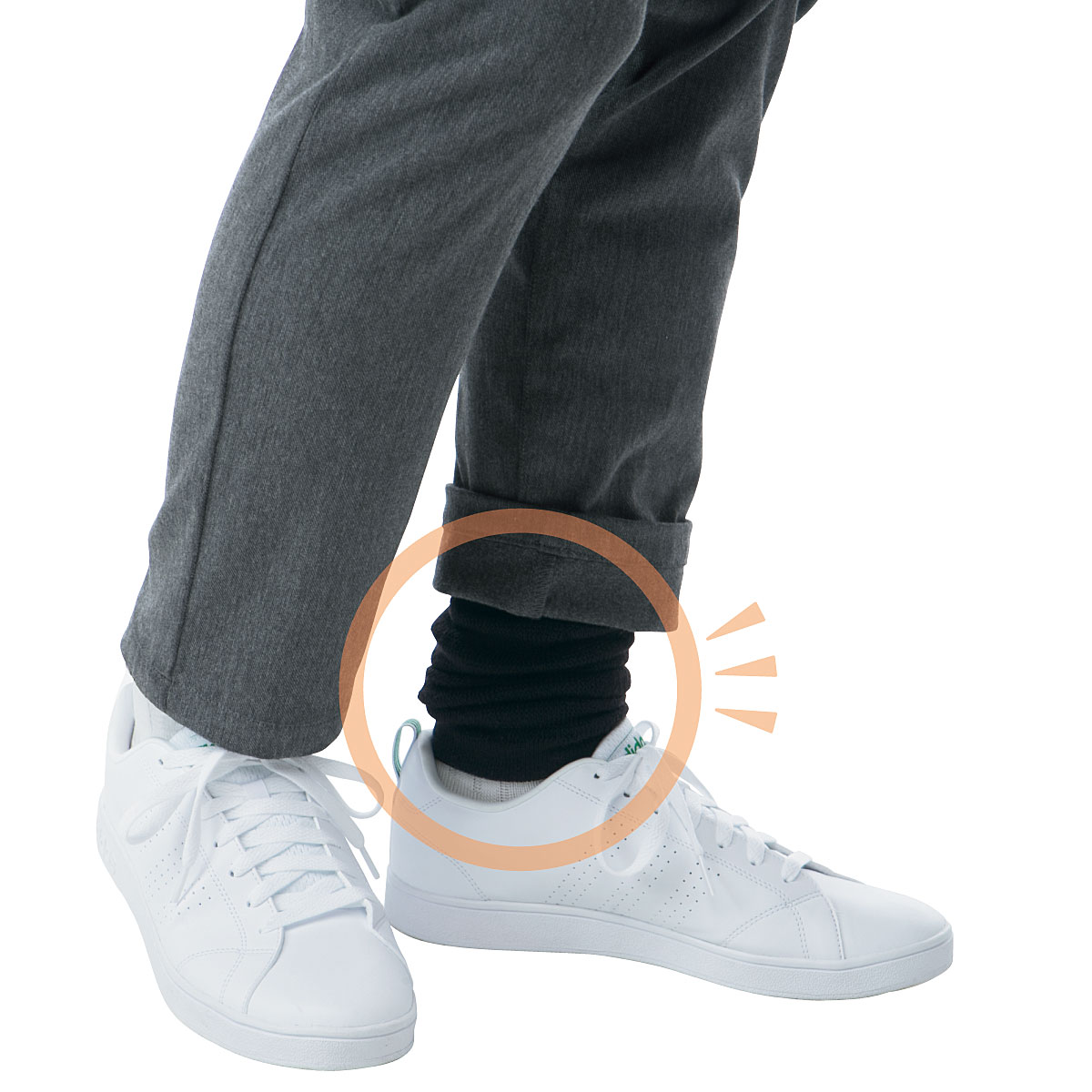 グレーデニムやスラックスの下に履いて冷えをガードパンツの裾から見えてもOk