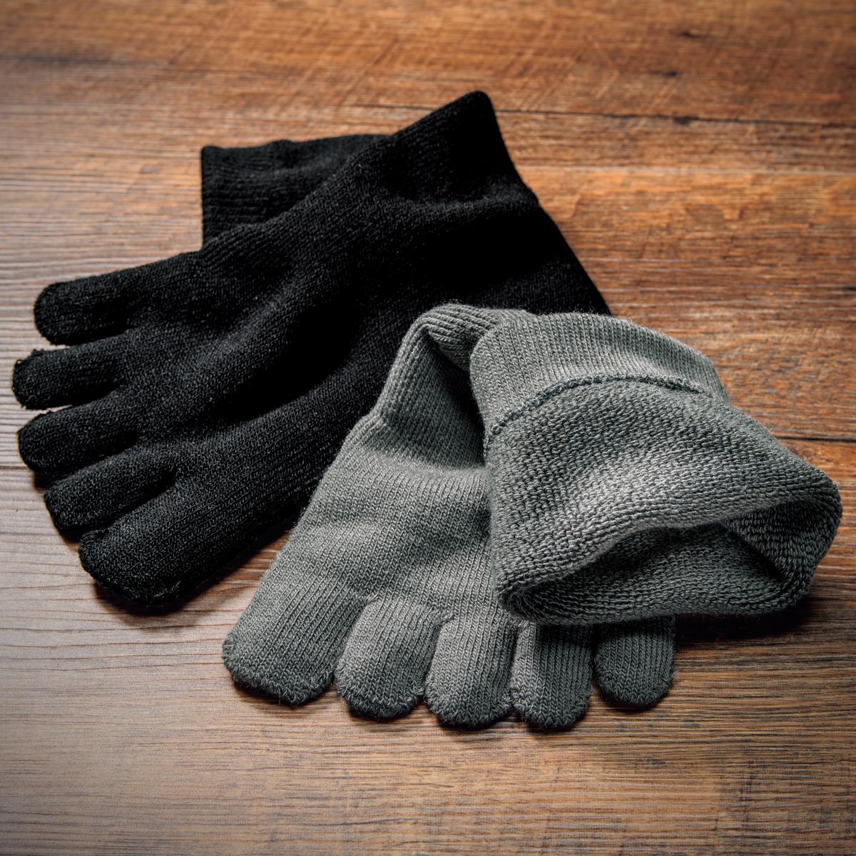 -お買い得ポイント-「足先の冷えが気になる...」そんな方にもこれなら5本の指をしっかり包み込み、しかも指先までパイルが詰まっているので冷えやすい指の先まで温めます。-デザイン-かかとなし仕様の5本指ソックスです。-素材特徴-5本指の先端までふわふわのパイルで仕上げた、特別な靴下。指の根本にたまりがちな汗もしっかり吸収して1日中快適な履き心地です。