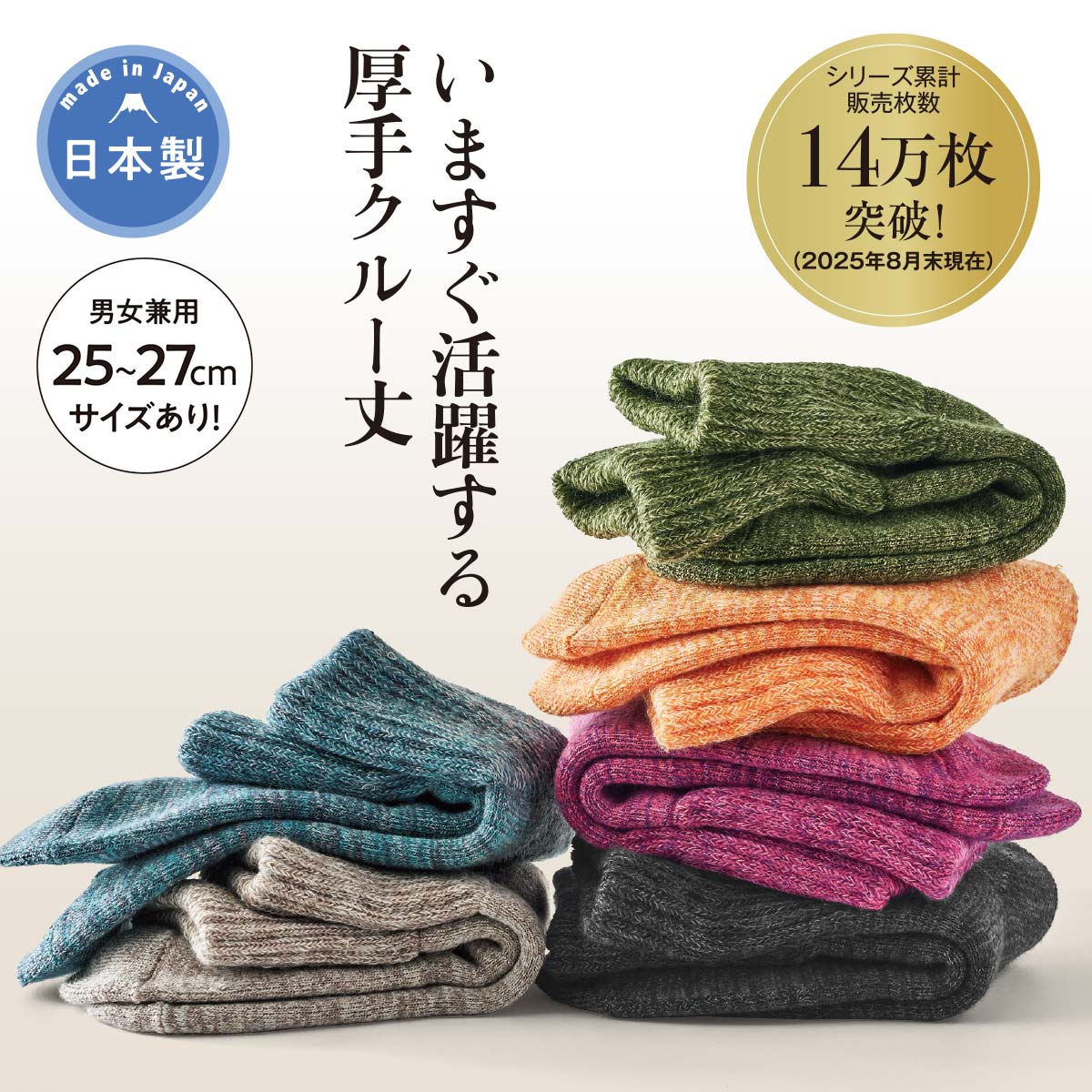 肌側総パイル×はき口ゆったりの、ロングヒット厚手快適リブソックス