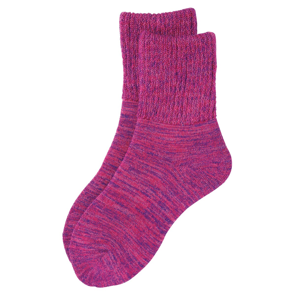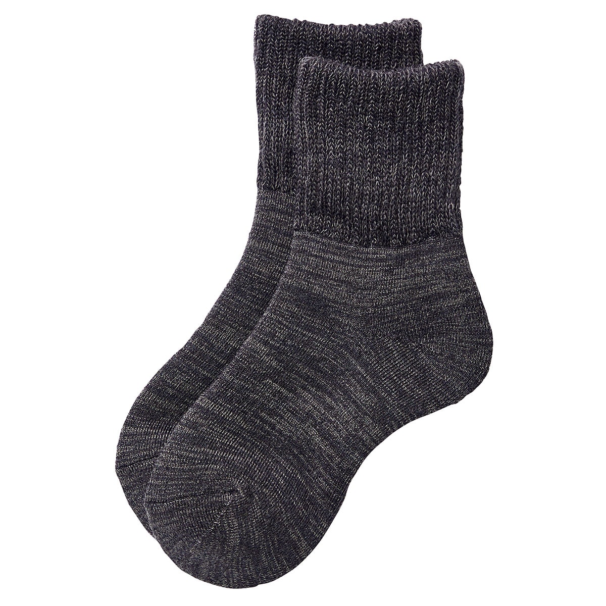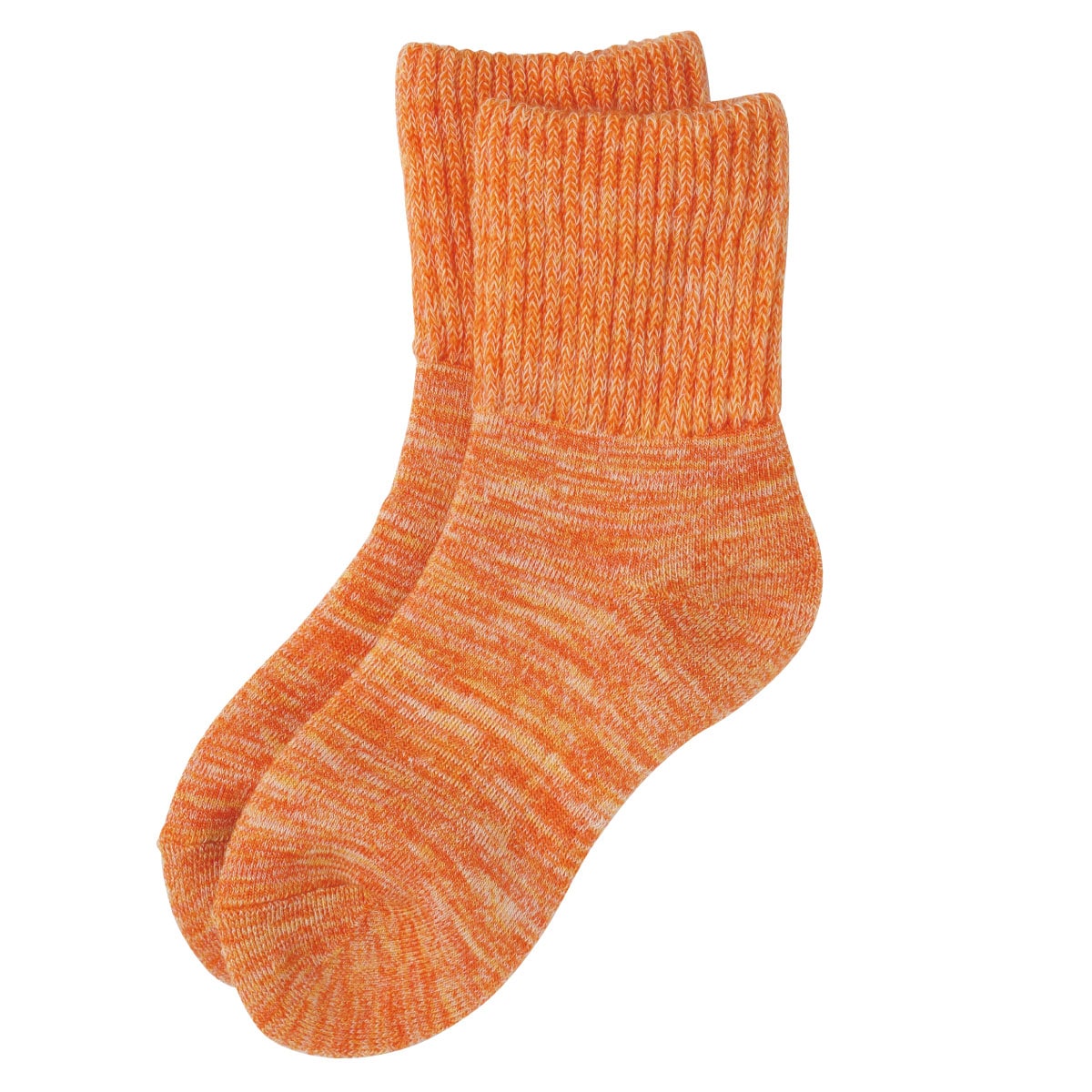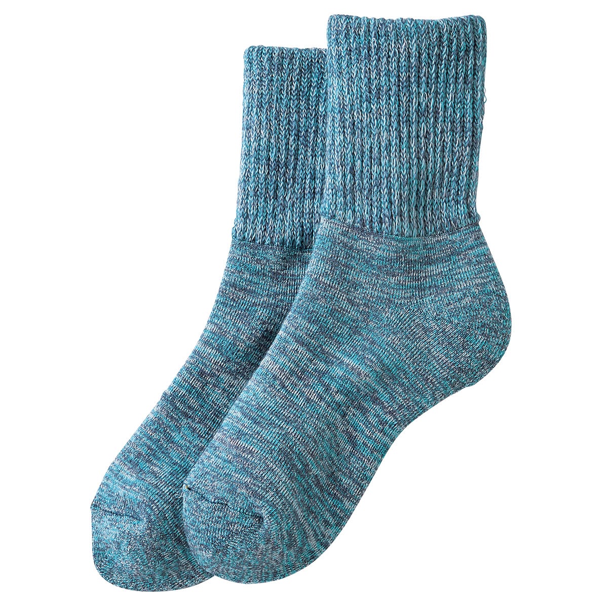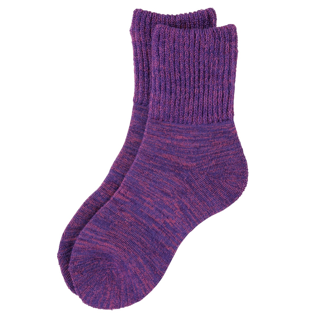 肌側総パイル×はき口ゆったりの、ロングヒット厚手快適リブソックス。肌側がふかふか総パイルの杢調カラーで、かわいいだけでなくしっかりあたたかいソックス。