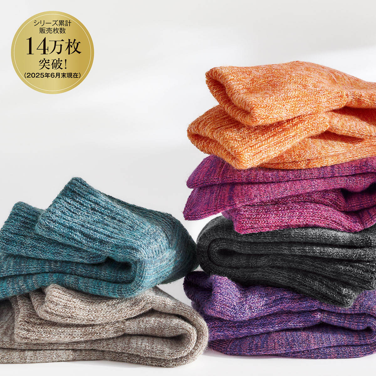 【シリーズ累計販売セット数14万セット突破!!(2025年6月現在)】肌側がふかふか総パイルの杢調カラーで、かわいいだけでなくしっかりあたたかいソックス。履き口はゆったり快適なリブ仕様、土踏まずはズレにくいサポート入りで仕上げています。男女兼用サイズの25cm~27cmもご用意しています。■まるでレッグウォーマーを重ねたようにあたたかいハイソックスもあります(SP-630)
