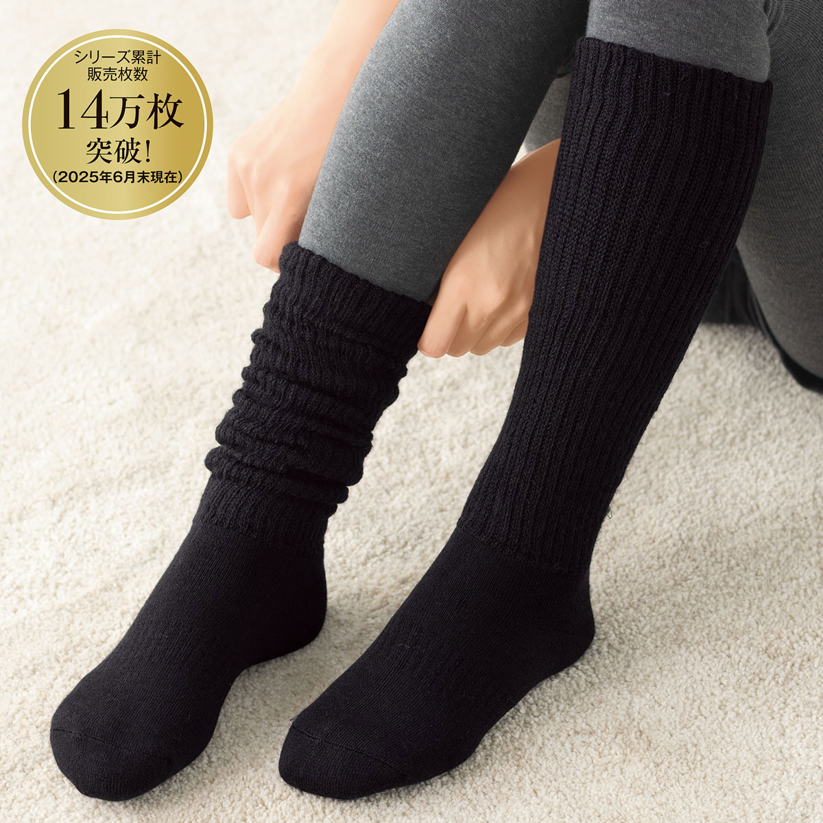 【シリーズ累計販売セット数14万セット突破!!(2025年6月現在)】伸縮性の良いリブの二重編みでふくらはぎをふっくら包み込み、あったか!ほどよくフィットしてズリ落ちにくく、締めつけすぎない履き心地が絶妙。これ一枚でレッグウォーマー要らずのあたたかさです。足首から下は肌側総パイル仕様で底冷えするフローリングでも快適に過ごせます。土ふまずはサポート入りでしっかりフィット。■クルー丈もあります(SP-585)