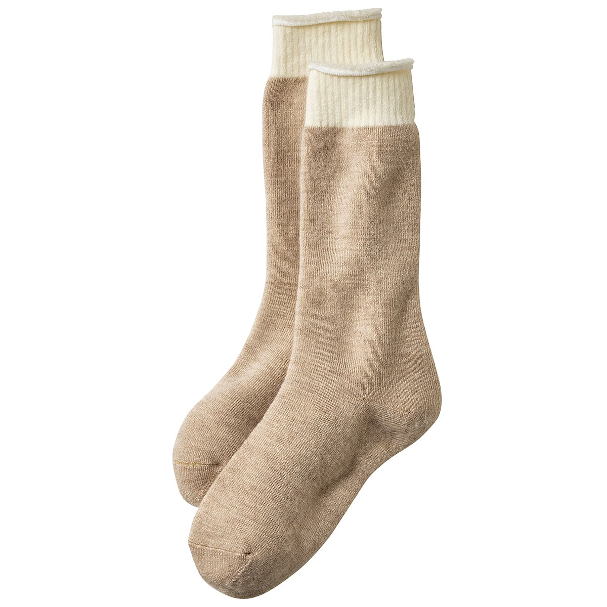本格的な防寒に役立つ靴下を目指し、登山用の靴下をお手本にしてつくりました。ウールの素材力がしっかり感じられるファインメリノウール90%以上のあたたかソックス。肌側総パイルのやさしい肌あたりとクッション性も魅力。