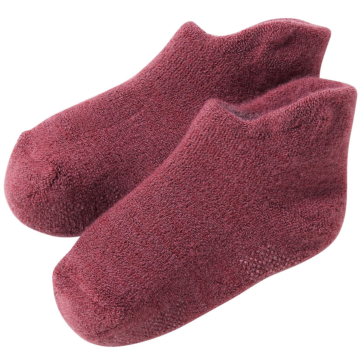 冬のルームソックスにおすすめ!はいた瞬間、ぬくもりに包まれる、肌側パイル起毛×ふっくら2重編みのぽかぽか厚手タイプ、足底すべり止め付き
