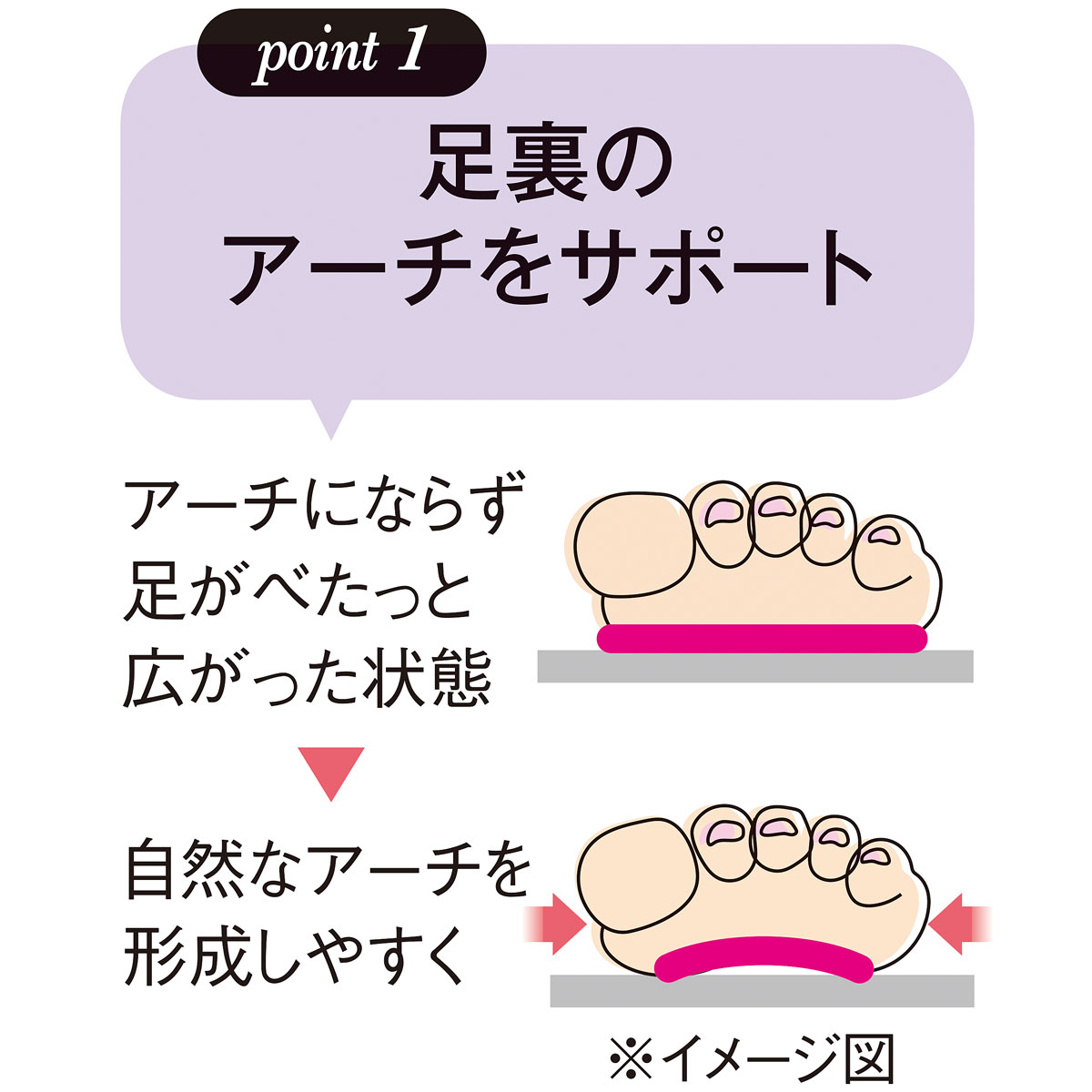 アーチ部分の特殊なゴム編みが自然なアーチ形成をサポート。