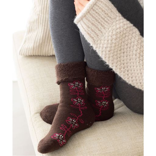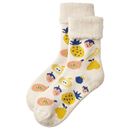 毎年人気の裏起毛あったかおうちソックスは滑り止め付きでさらに使いやすく!肌側全面の肉厚パイルを起毛させているので、とにかく暖かく、ポカポカがずっと続きます。楽しい気分になる柄物のほか、ご要望にお応えして無地見えするシンプルなカラーもつくりました。はき口は、お好みで伸ばしても折り返してもご使用いただけます。21cmサイズから対応しています。