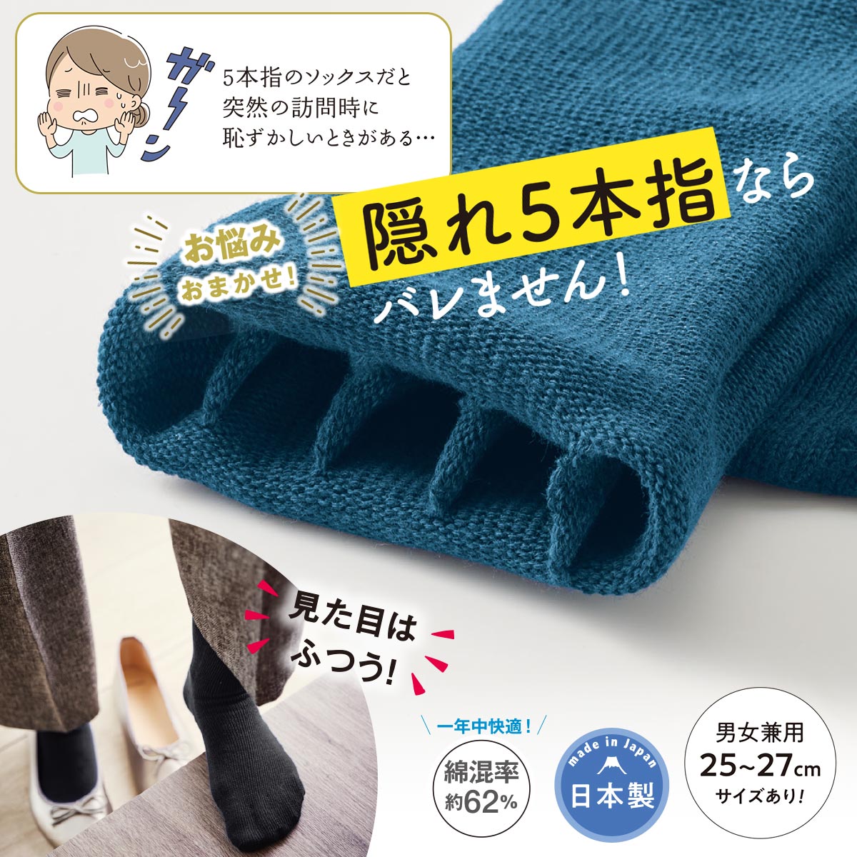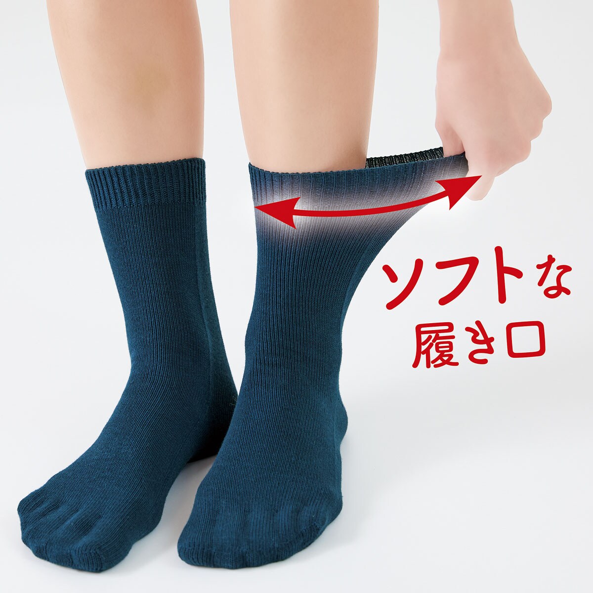 足指さらさらソックス(クルー丈)(隠れ5本指)(23-27cm対応)(日本製)(ムレ軽減)