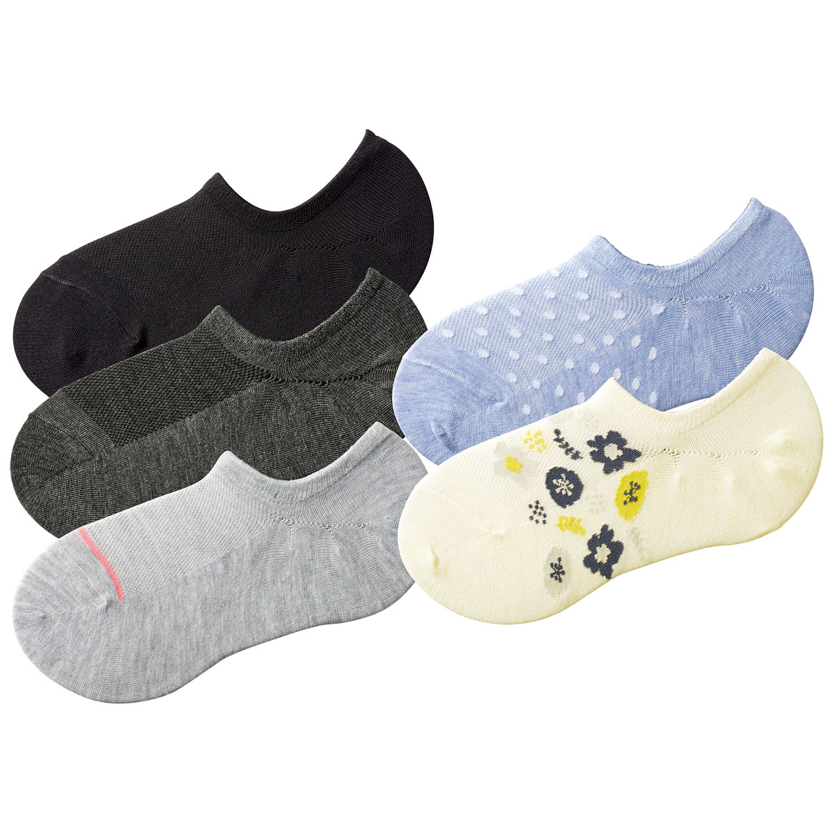 甲がメッシュでさわやかに履けるスニーカー丈。シンプル使いできる黒無地のほか、楽しい色柄の5足組です。コスパ感のあるお値打ち価格でお届けします。