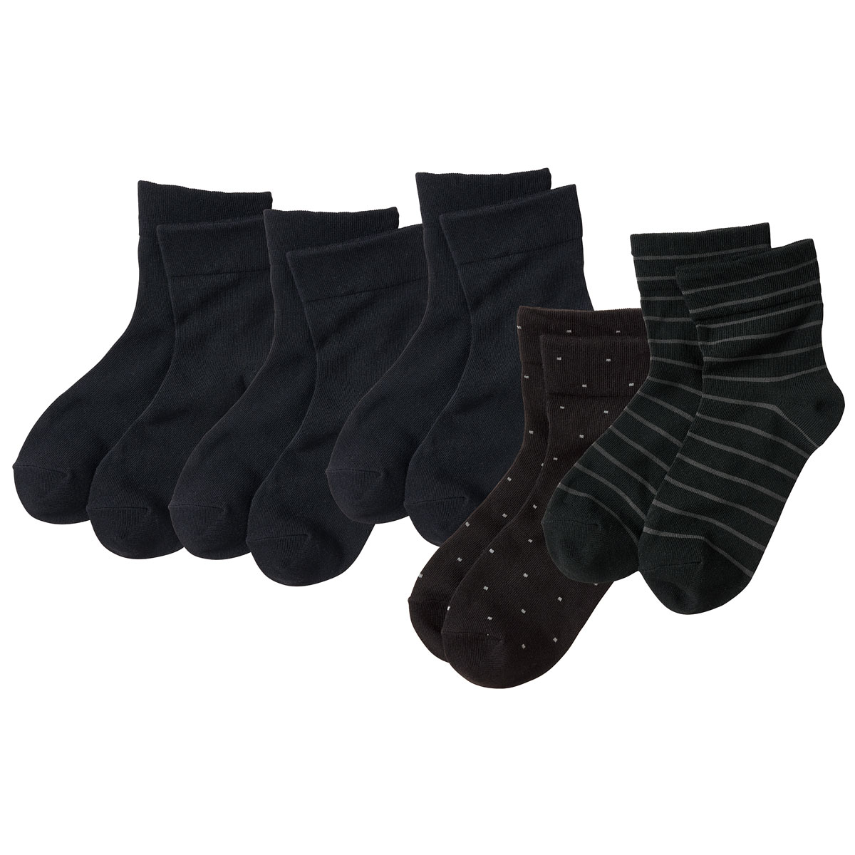 ブラック系 柄違い5足組 (ブラック無地3足・ドット・ボーダー)