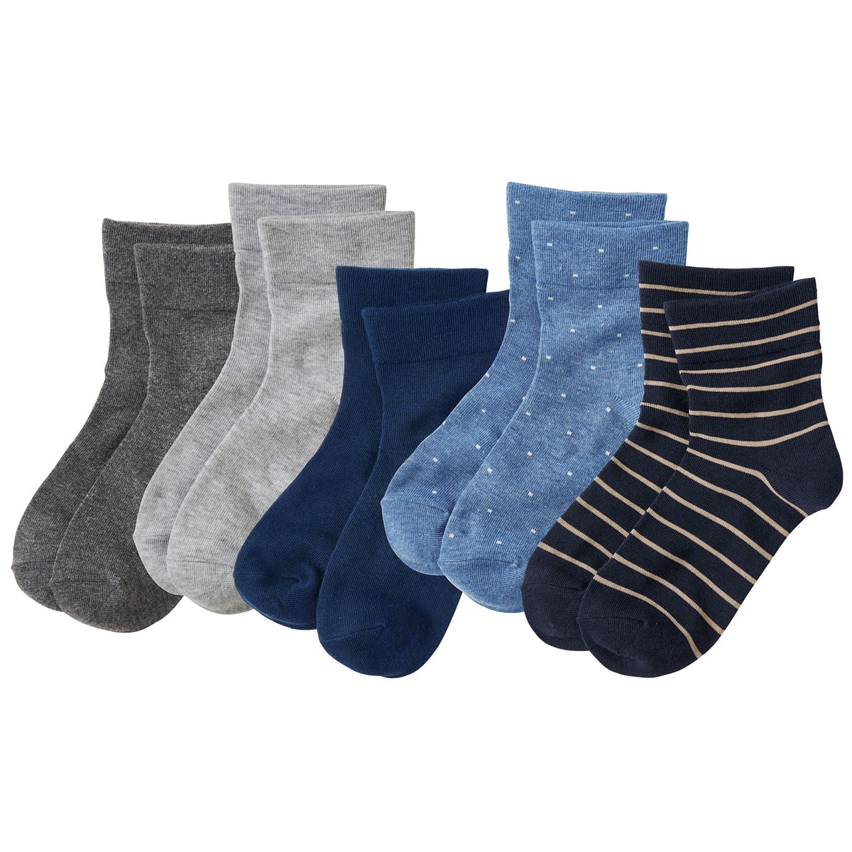 ブルー系 色・柄違い5足組 (チャコール・杢グレー・ネイビー・ドット・ボーダー)