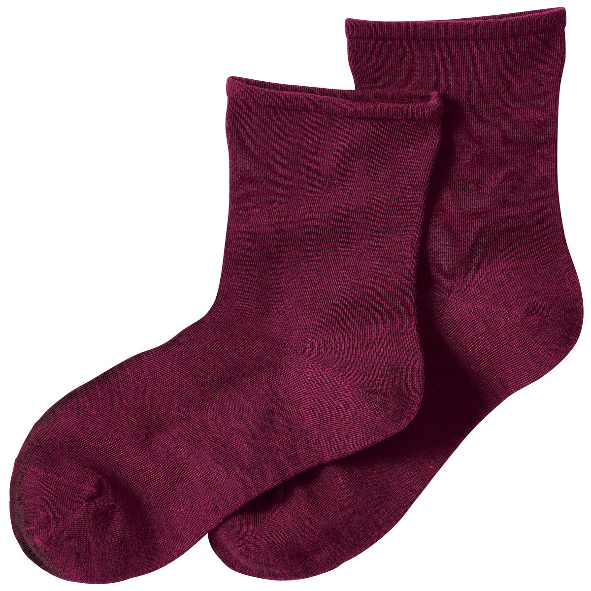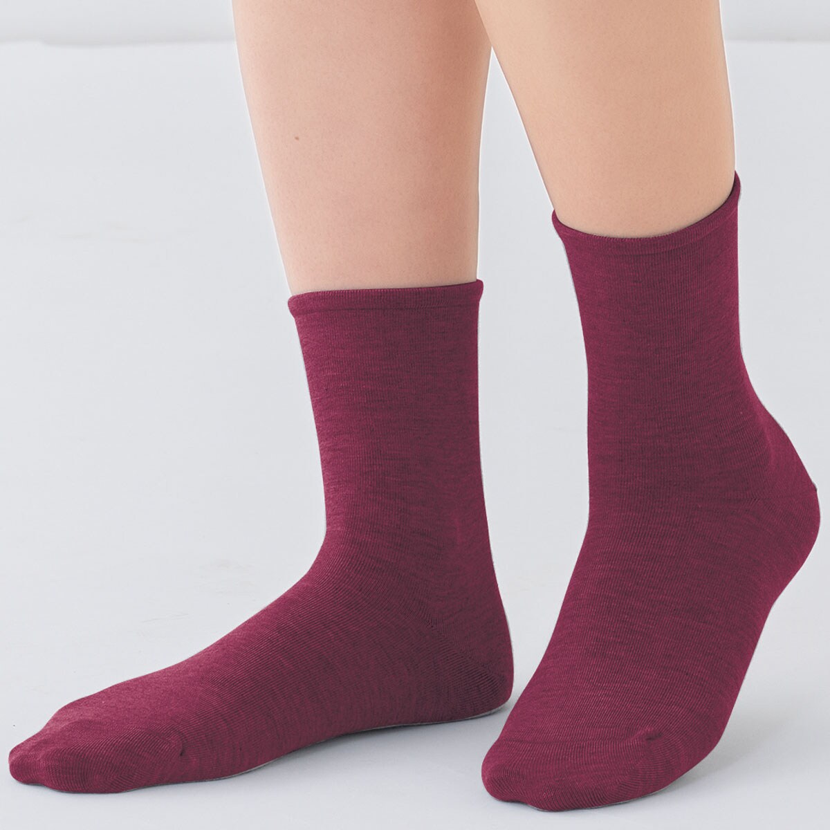 クセになる軽いフィット感のやや薄手クルー丈ソックス。 ボルドー着用例