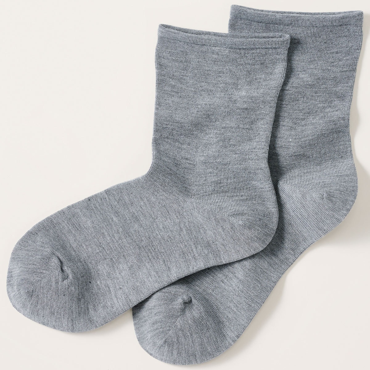 クセになる軽いフィット感のやや薄手クルー丈ソックス、新登場!多くのお客様のご要望にお応えして、履き口はゴムなしで締め付けない仕様に。