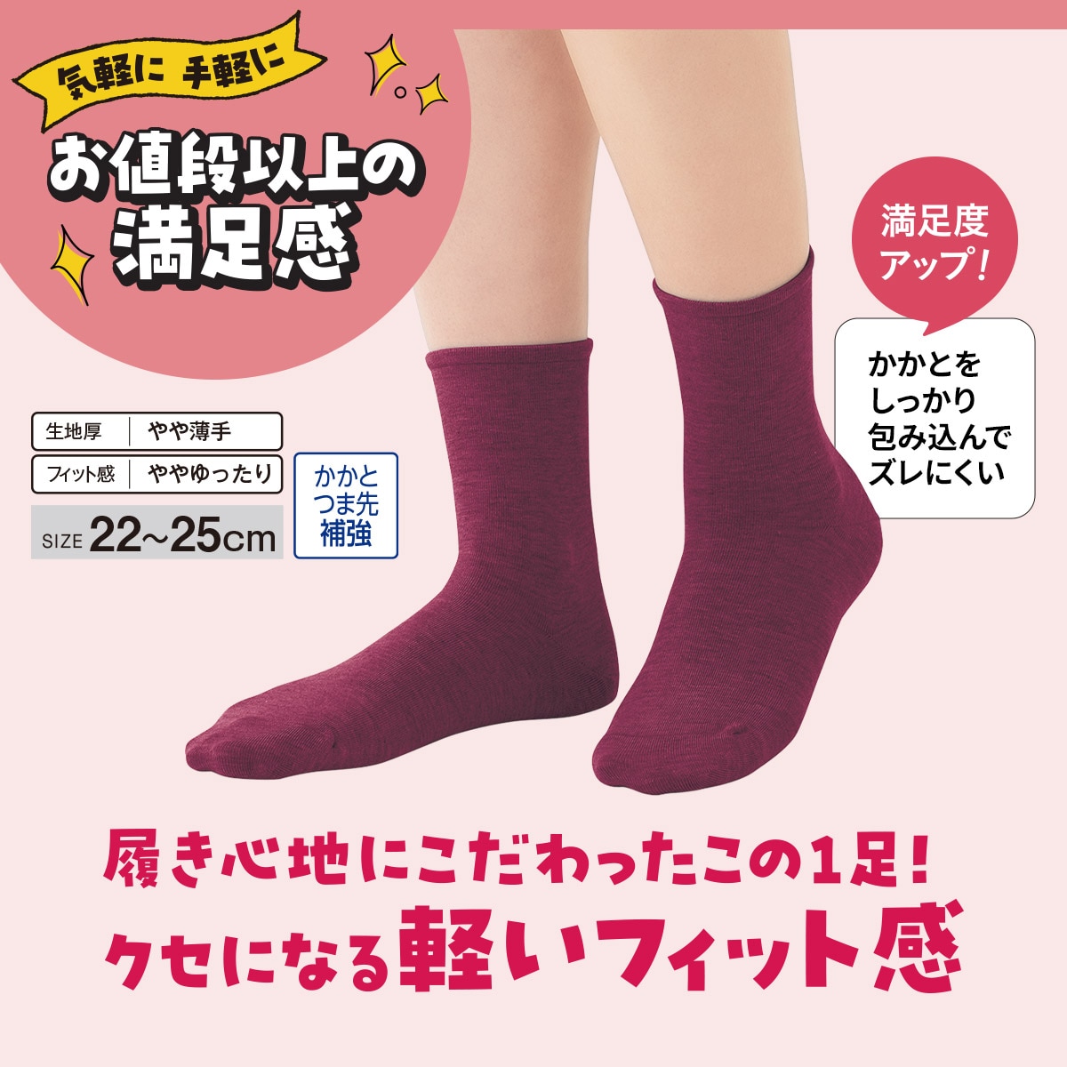 まとめ買いでお得!クセになる軽いフィット感のやや薄手クルー丈ソックス、新登場!