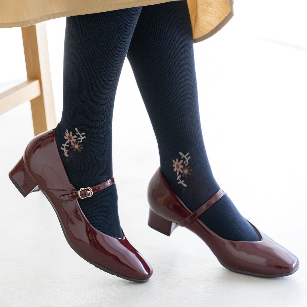 着圧ソックスに関するお悩みである「脱ぎ履きの大変さ」や「締め付けが強い」という不満を解消すべく、大妻女子大学の学生さんとのコラボ企画でうまれた着圧ソックス。。母世代、娘世代が共に満足できるような柄を足首まわりに施して、いつもの靴下感覚で着用していただけます。履き口はゴムなしでゆったりと、足首は圧を弱めた設計で脱ぎ履きもラクラク。さらに、身長低めさん向けに丈を短くしたサイズもご用意。つま先・かかとにはアロエエキス練り込みの保湿糸を使用した、こだわり満載の日本製ソックスができました。今期は新色も仲間入り!