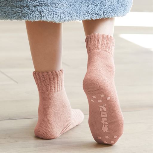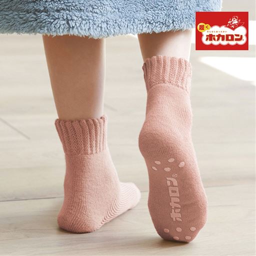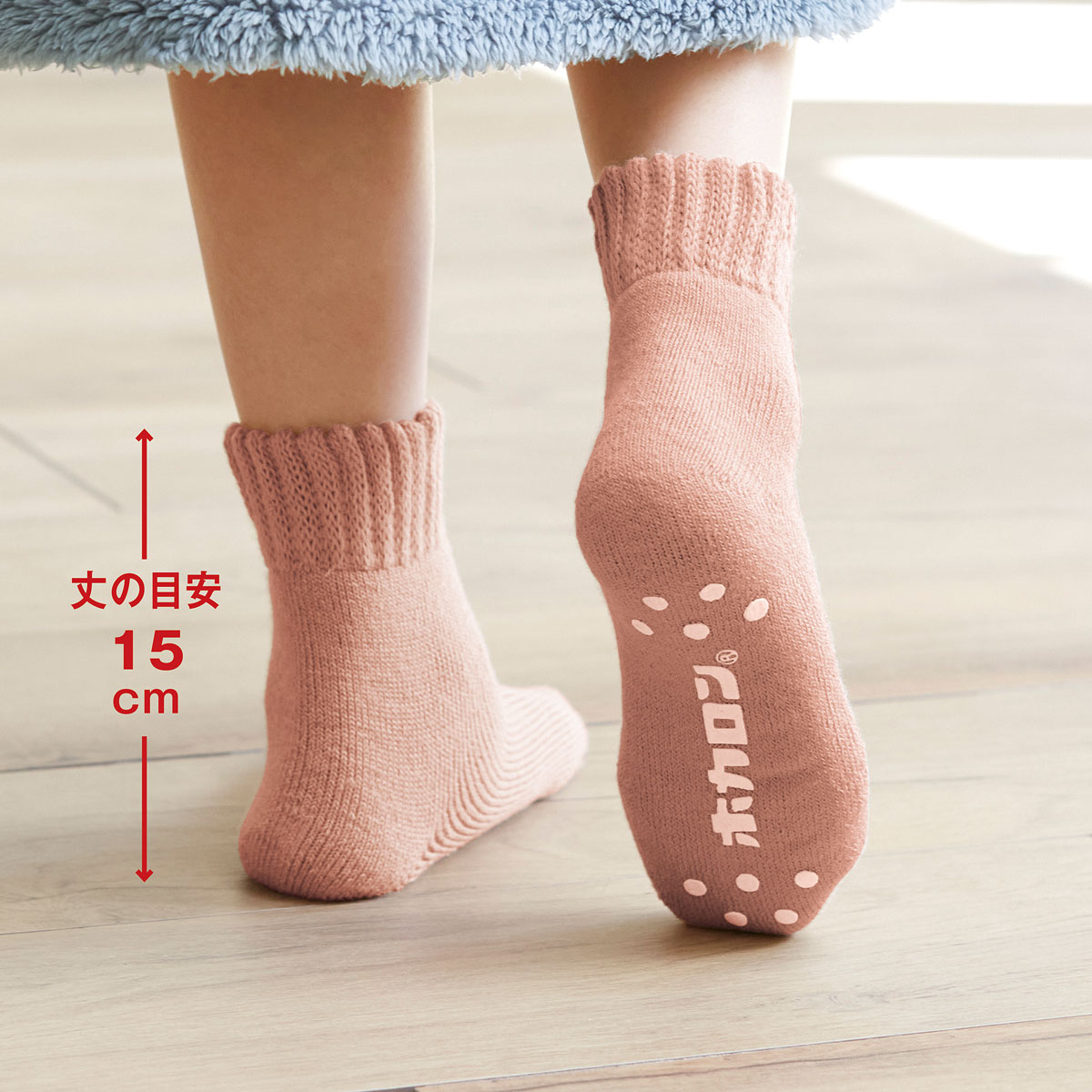 履いてすぐ暖かい「ホカロン」ルームソックス(ふかふか裏起毛)(滑り止め付き)