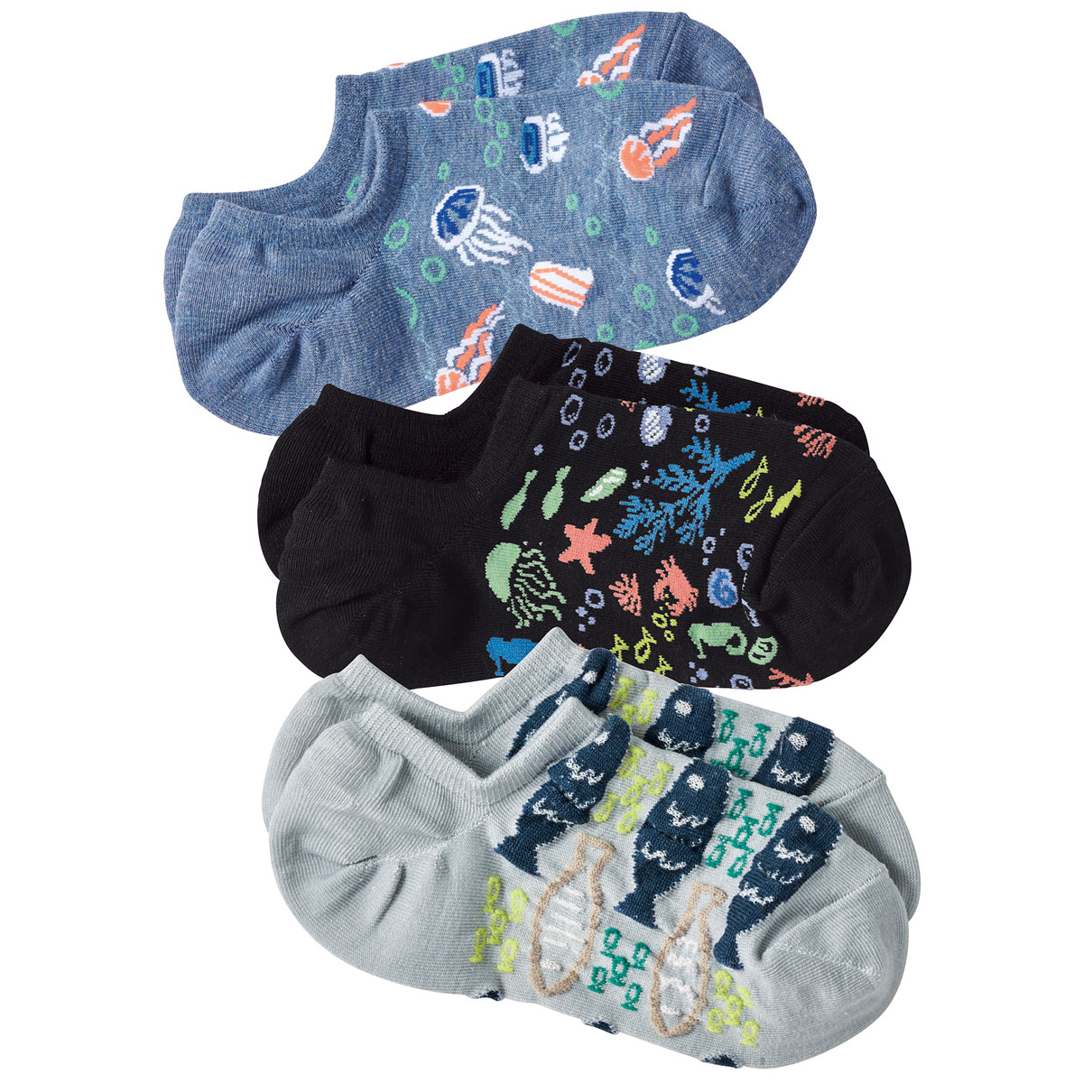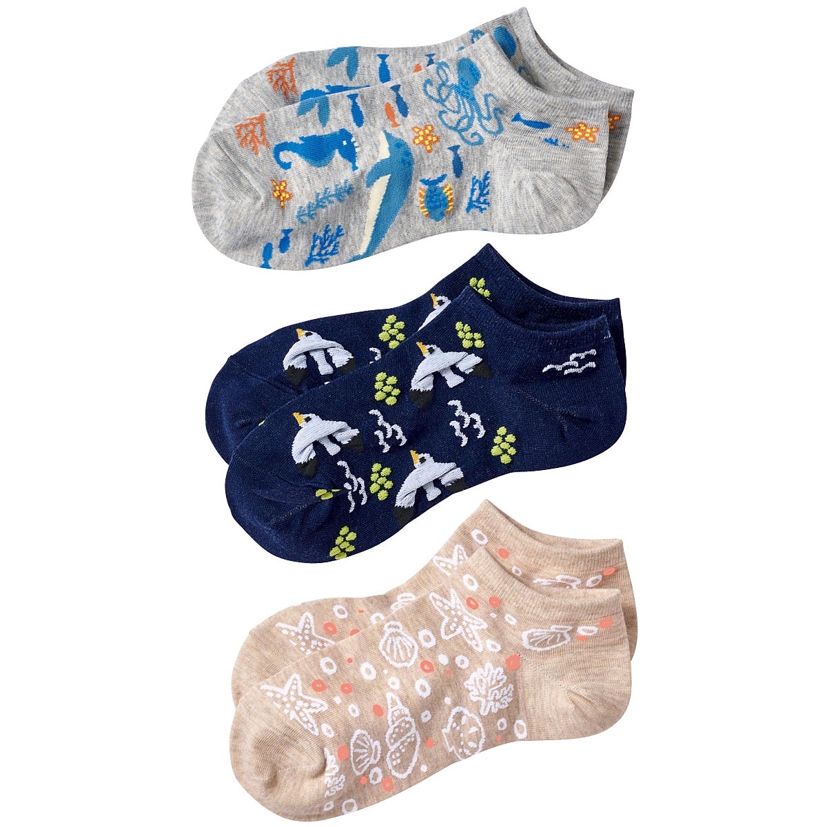 マリン柄が楽しいスニーカー丈ソックス・色柄違い3足組