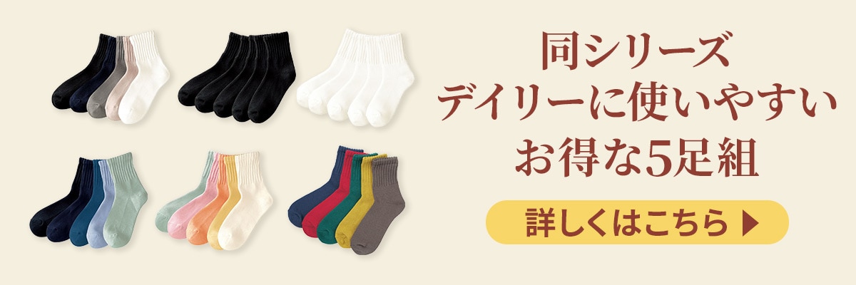 シリーズ累計販売セット数57万セットを突破した(2025年3月末現在)、セシールのロングヒットクルー丈ソックス5足組が、お客様のご要望にお応えして1足からご購入いただけるようになりました!履き口ゴムは締め付け感の少ないゆったり仕様なのにずり落ちにくく、しっかりした生地感が人気の秘密です。お好きな色の買い足し・買い替えに是非ご利用ください。気になる方はまずは1足からお試しください。オススメです!■定番の5足組は「SP-38」で検索