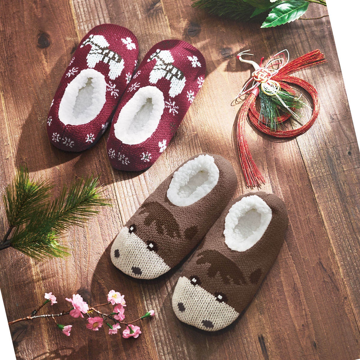内側の全面もこもこボアが、ふっくらあたたかな履き心地のルームスリッパ。2026年の干支にちなんで2種類の馬柄をご用意しました。フローリングでの歩行を想定して足底にはすべり止め付き。年始の1足として是非お役立てください。