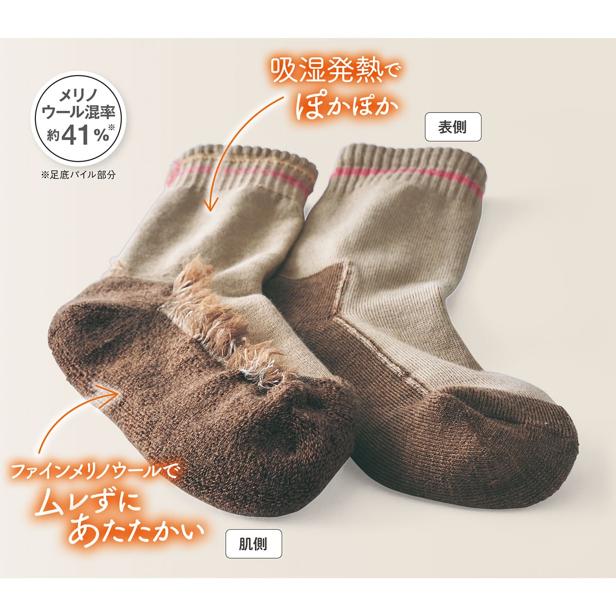 ■羊毛、アクリル、ナイロン、レーヨン●丈の目安20cm▼肌側に糸の端が出ておりますが、商品の特性であり、ご了承ください。●日本製【生地厚/ふつう】 【生地厚(パイル部)/厚手】 【フィット感/ふつう】 【メリノウール混率約41%】(底パイル部分)【発熱】 【吸湿】