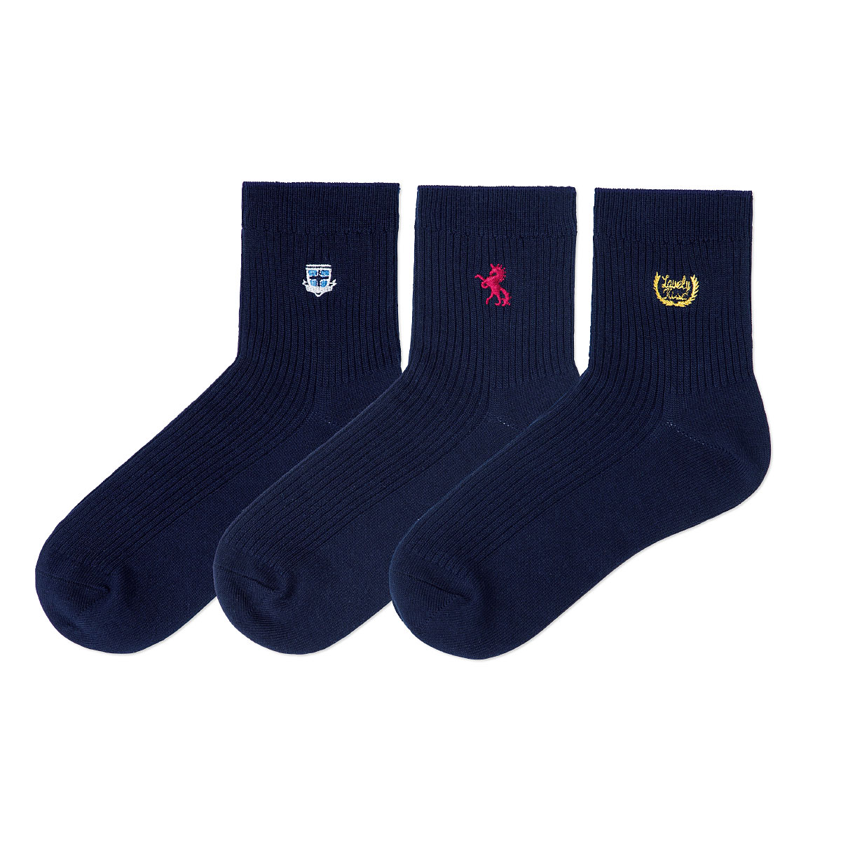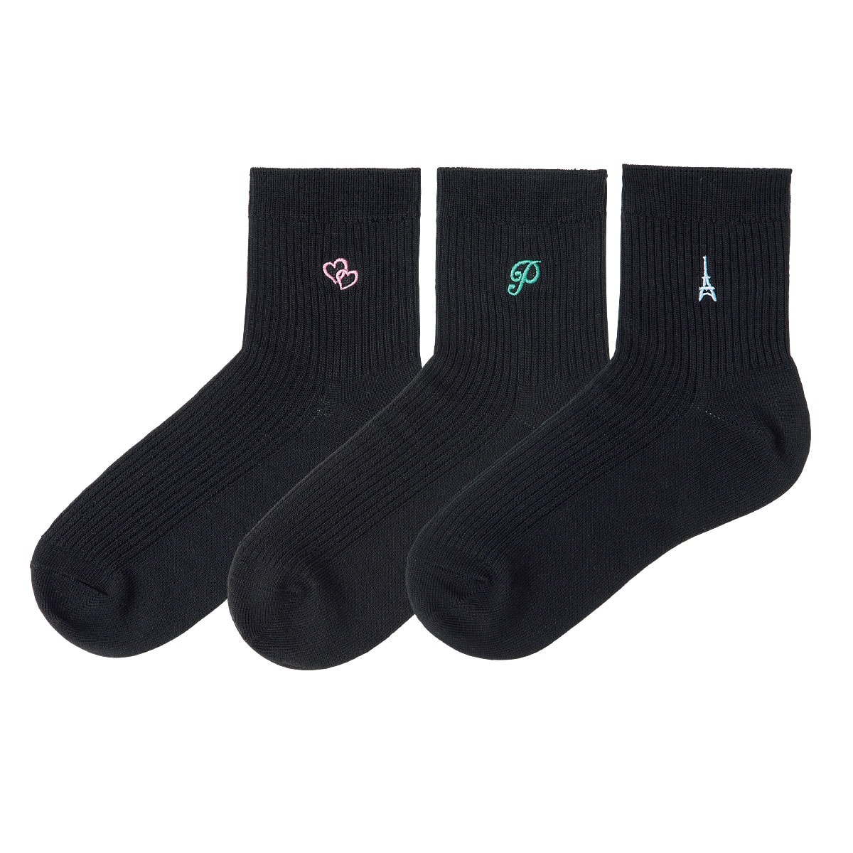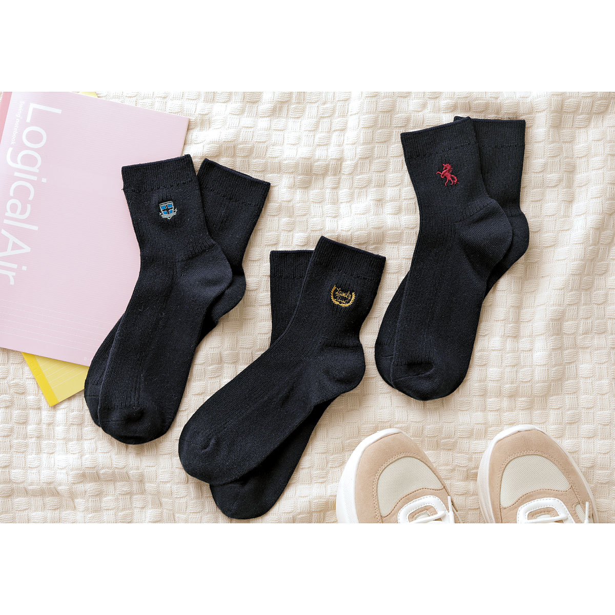 選べる3丈3色!定番の刺しゅう付きスクールソックス3足組