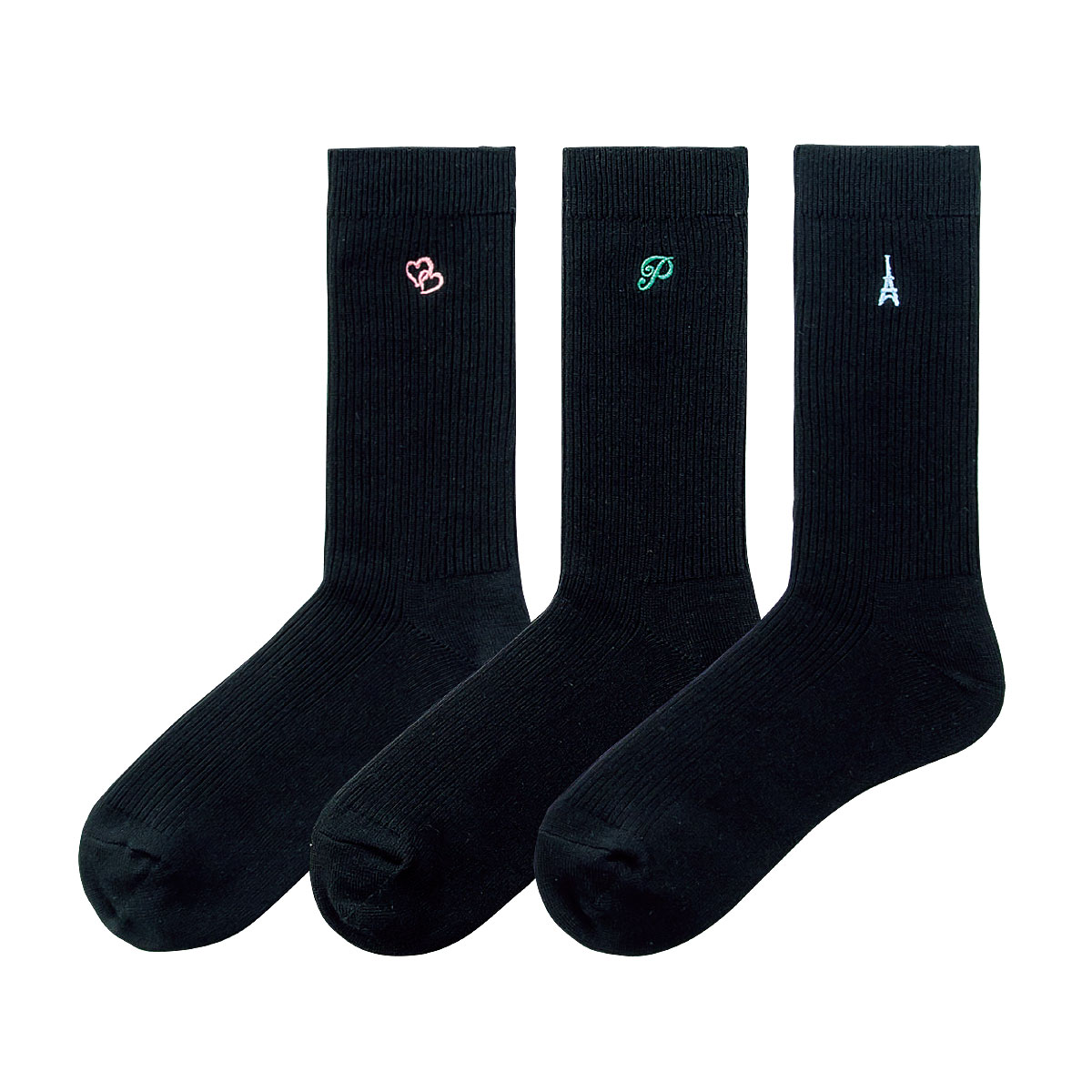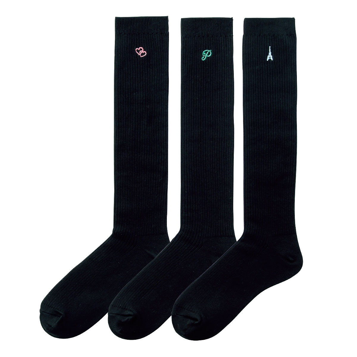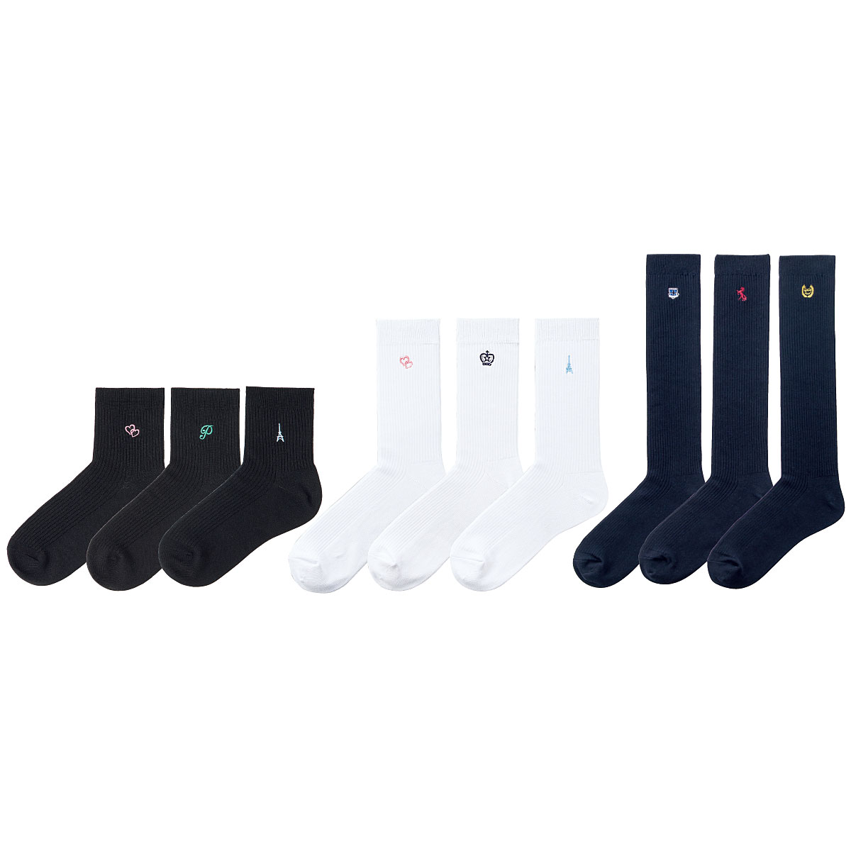 選べる3丈3色!定番の刺しゅう付きスクールソックス3足組