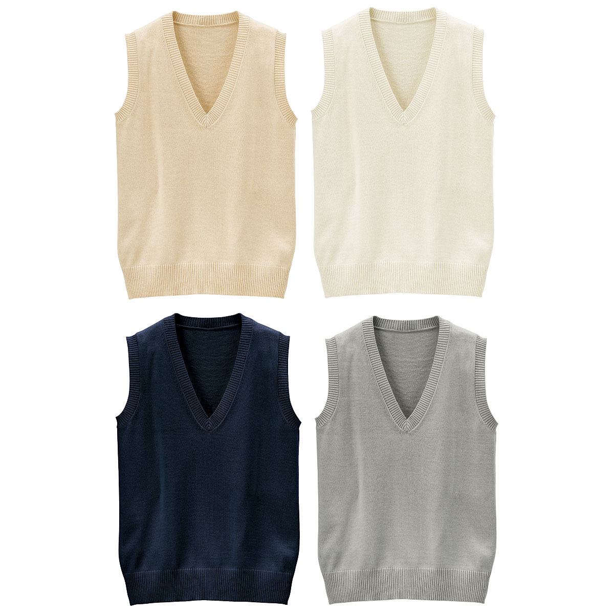 抗菌防臭機能付き 薄手Vネックニットベスト(スクール・制服)カラー:オフホワイト/ライトベージュ/ライトグレー/ネイビー