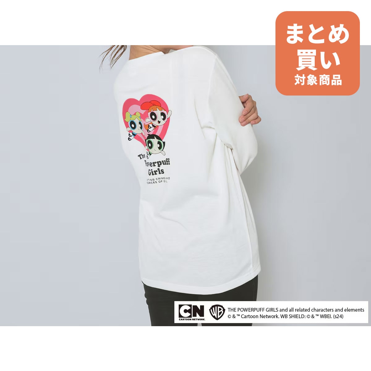 後ろのプリントがパワーパフガールズ感満載で可愛い!フロントは胸元にロゴがプリントされていて、シンプルなデザインで使いやすい◎ゆったりした着心地で、ロングシーズン着られるのも嬉しいポイント