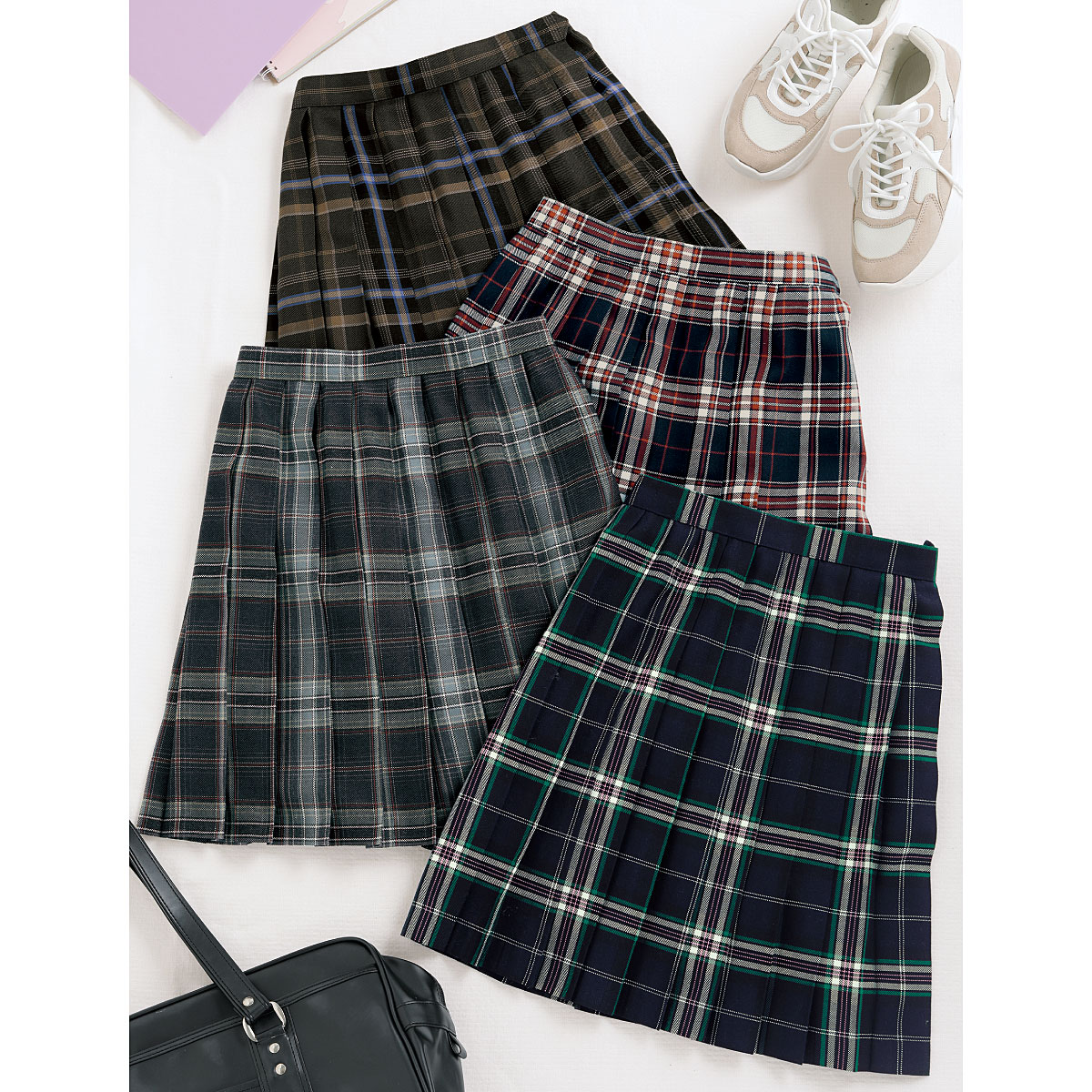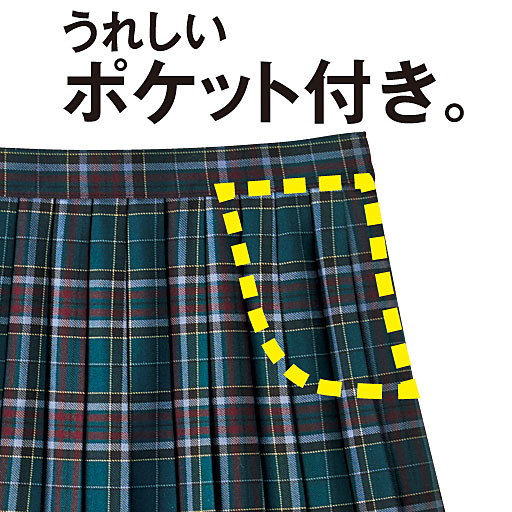 裏地・アジャスター付きプリーツスカート(日本製・チェック柄)(防しわ)(スクール・制服)