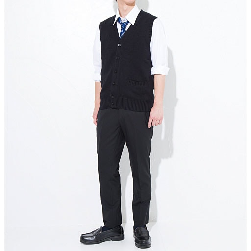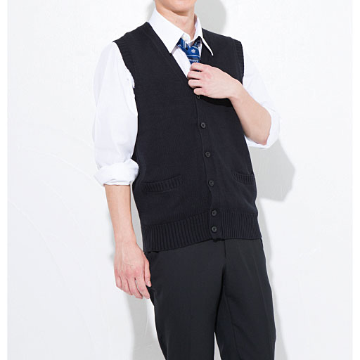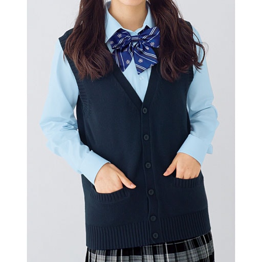 年間使いやすい綿100%前開きベスト(Vネックニット)(洗濯機OK)(スクール・制服)