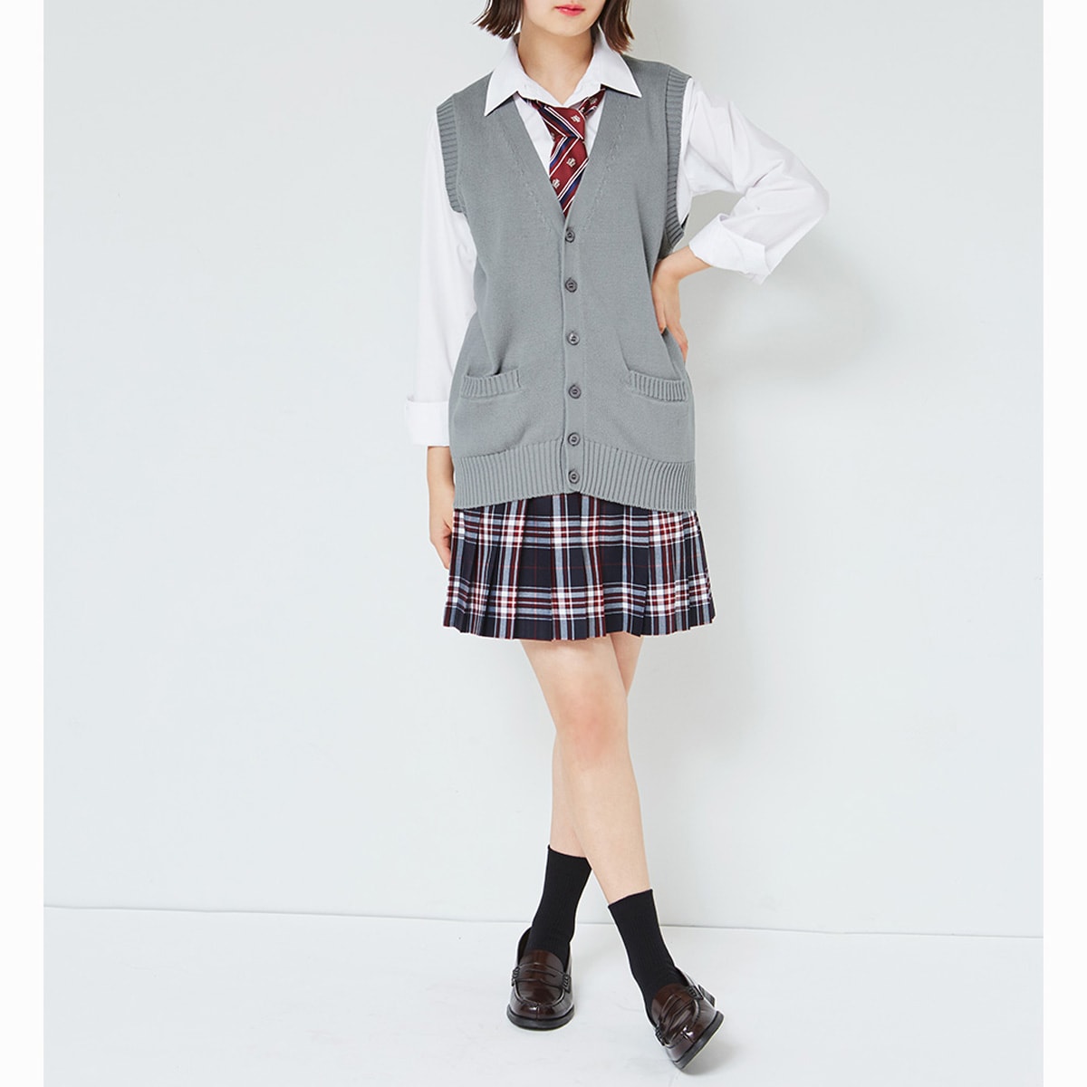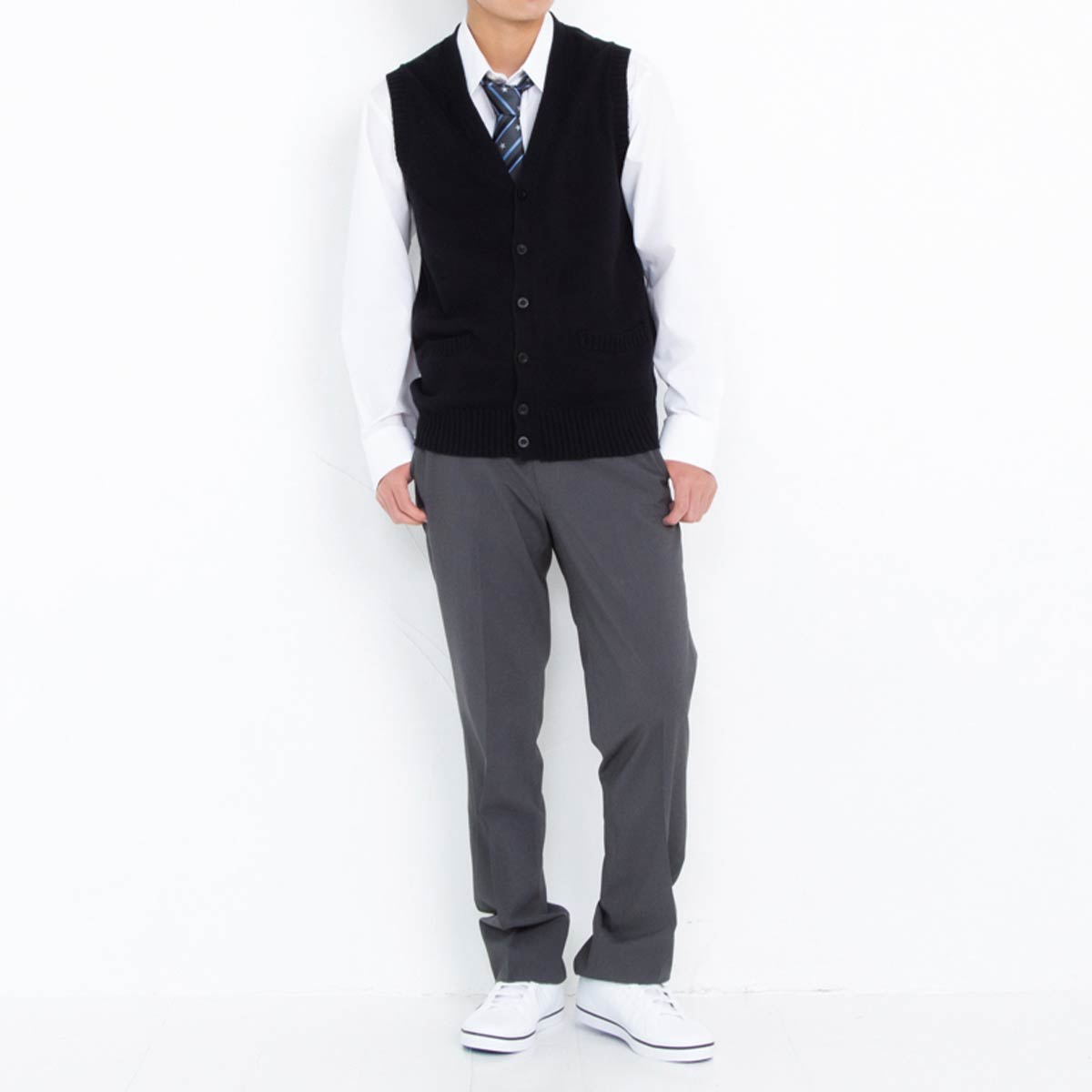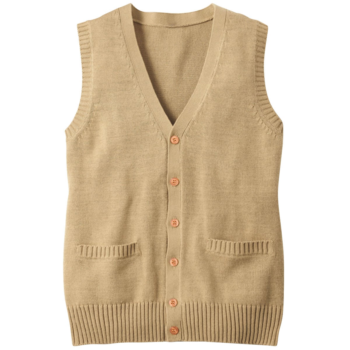 年間使いやすい綿100% Vネック前開きニットベスト(スクール・制服)カラー:ブラック/オフホワイト/キャメル/ライトグレー/ネイビーサイズ:S/M/L/LL