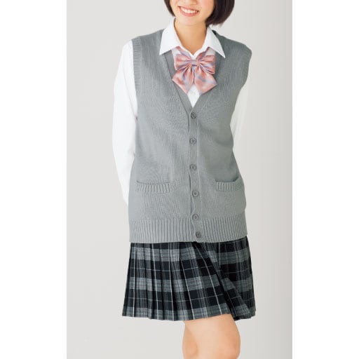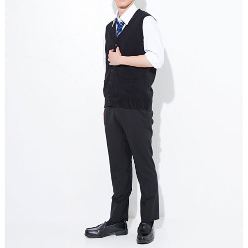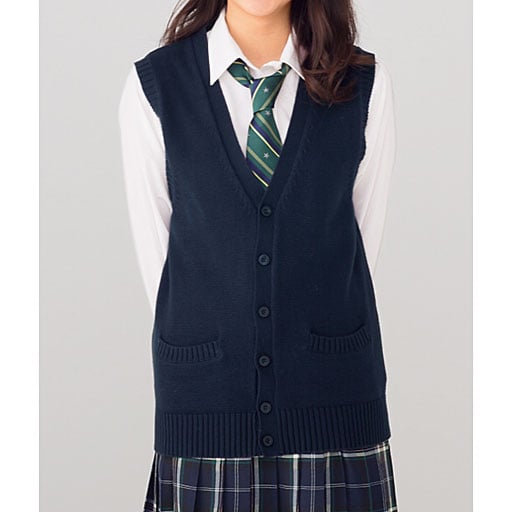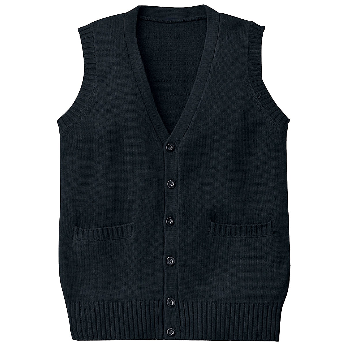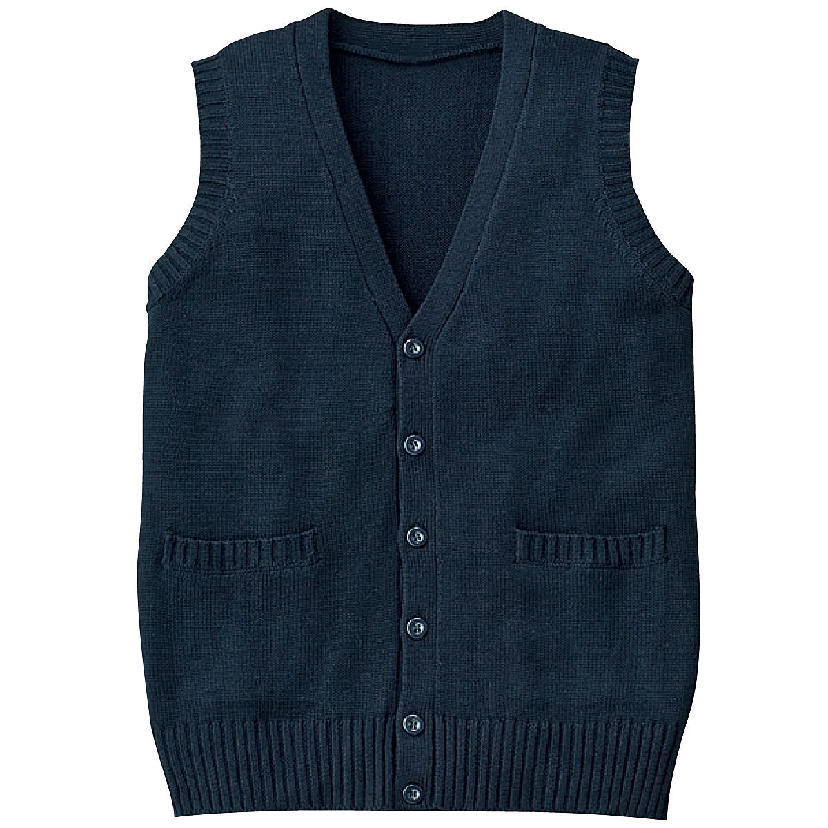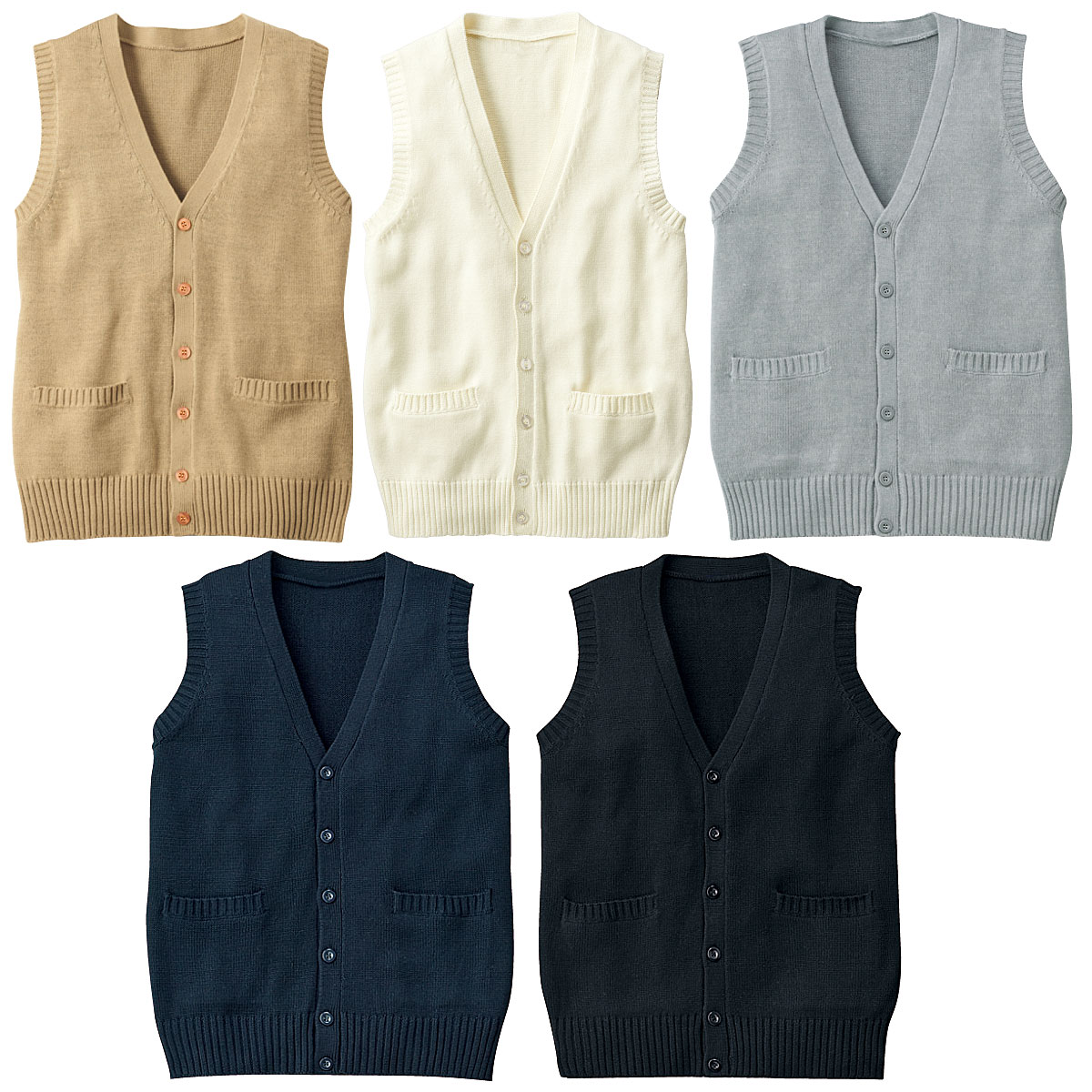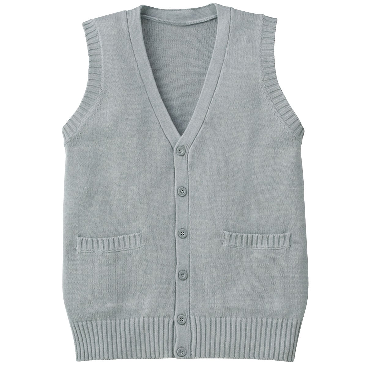 年間使いやすい綿100%前開きベスト(Vネックニット)(洗濯機OK)(スクール・制服)