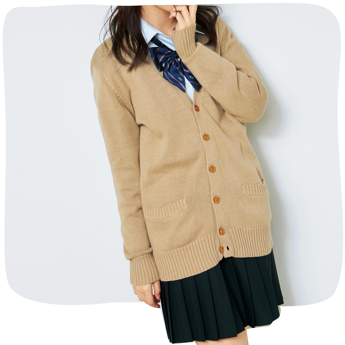 年間使いやすい綿100% Vネックニットカーディガン(スクール・制服)カラー:ブラック/オフホワイト/キャメル/ライトグレー/ネイビーサイズ:S/M/L/LL