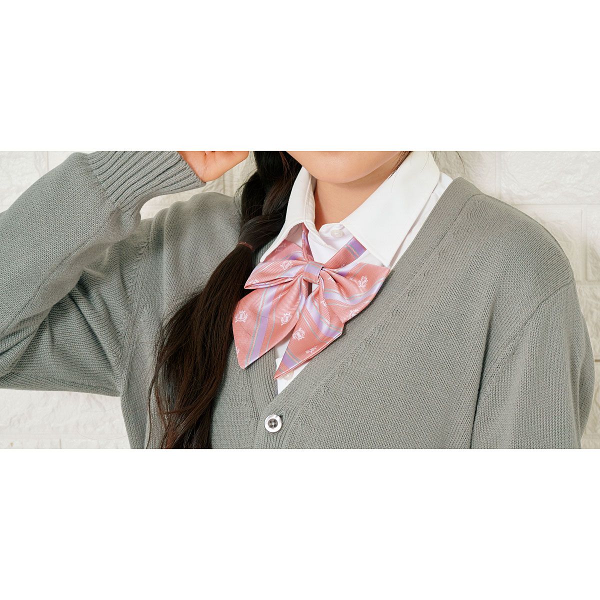 ライトグレー 柔らかな綿ニットのグレーカーデにピンクシャツを合わせて優しげな印象に