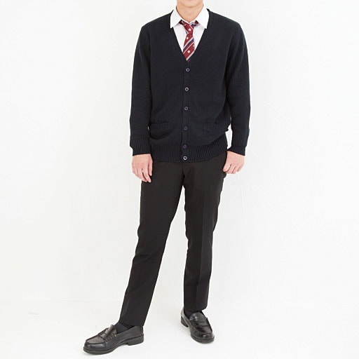 年間使いやすい綿100%カーディガン( Vネックニット)(洗濯機OK)(スクール・制服)