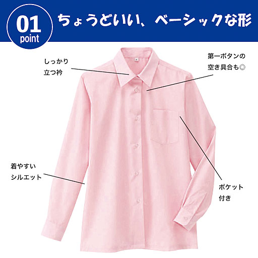 この値段でしっかりしていて買って良かったなと思いました。学生ではありませんが、スーツの下に着ています。一見シンプルで地味ですが、タイやスカーフを加えることも出来て重宝します。大人の方にもおすすめ!(使用者:40代女性)