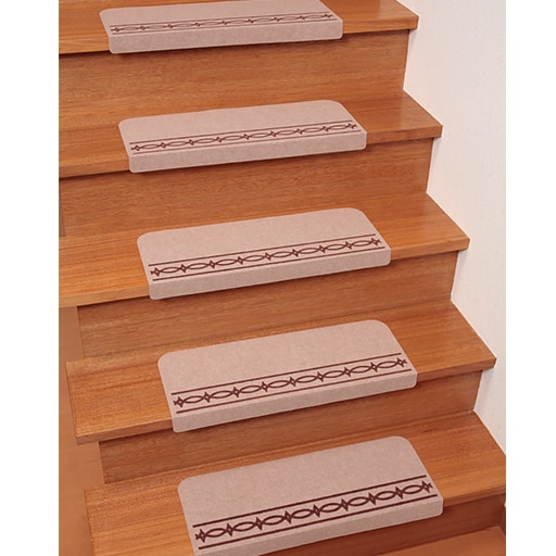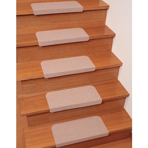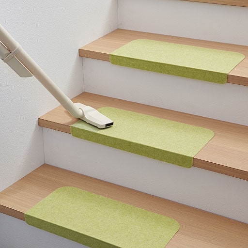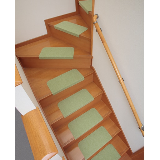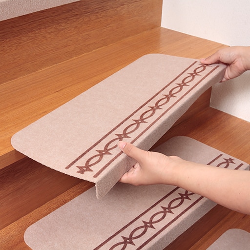 ソフトな踏み心地で足に優しい階段用マット。ペットによるキズや汚れを防ぎ、パタパタという足音も軽減できます。階段の角をカバーする折り曲げ付きで、裏面は吸着加工。Bはプリント部分にすべり止め加工を施しました。